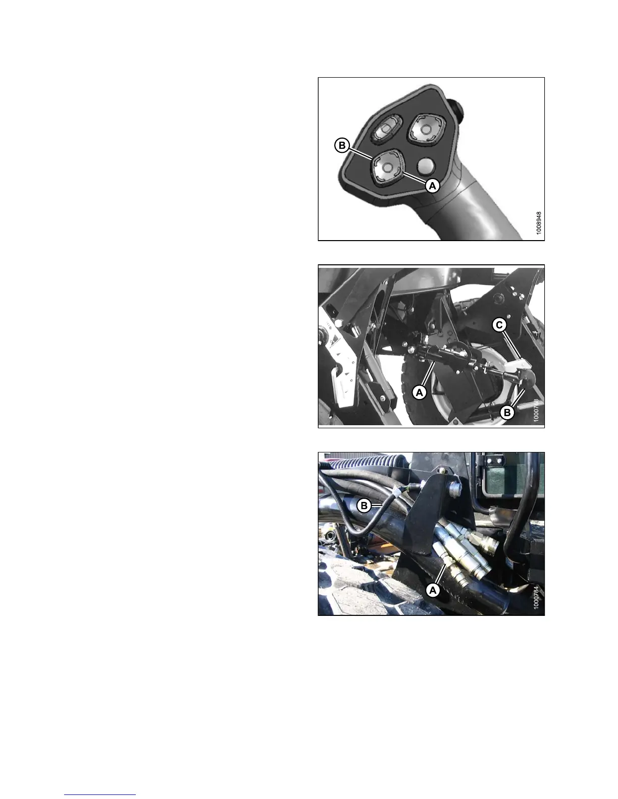 9. Activate header tilt up (A) and header tilt down (B)