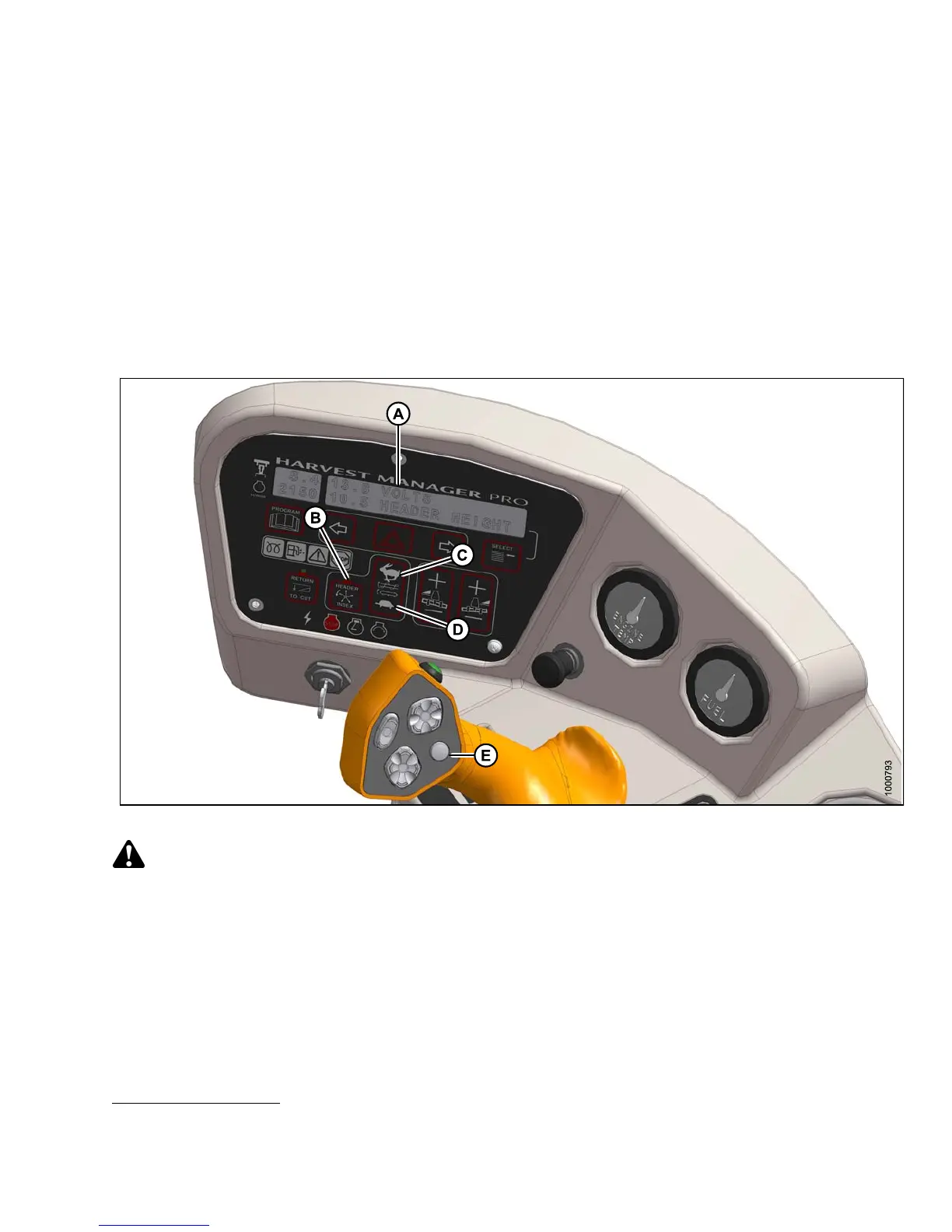 4. Use the FAST (C) and SLOW (D) buttons to set the desired minimum draper speed.