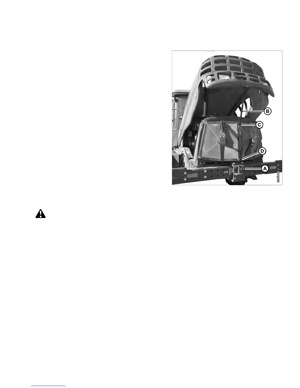 1. Grasp the strap at (B) and loop under upper hook (C).