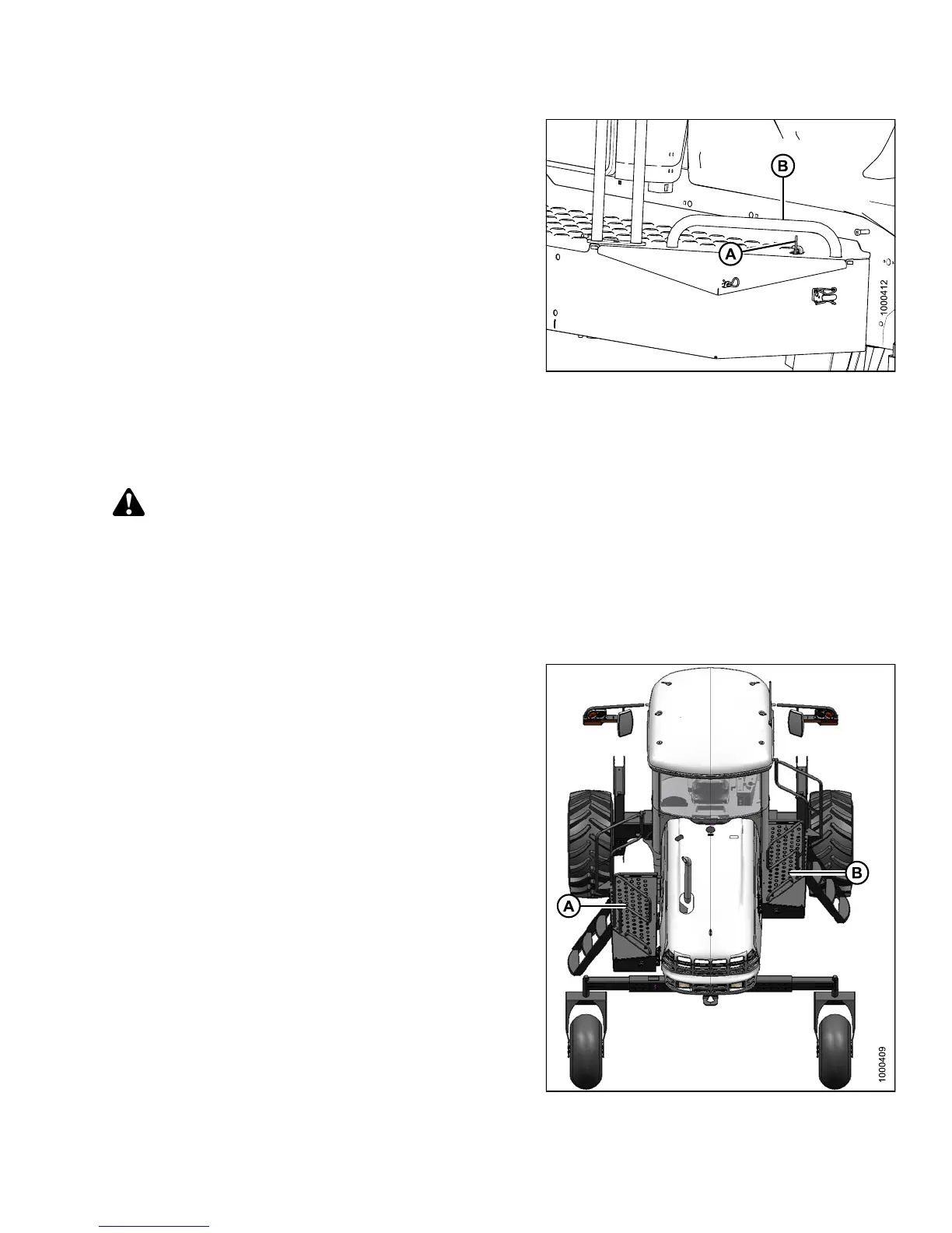 access to the hydraulics plumbing or battery, the platforms can be swung away from the windrower.