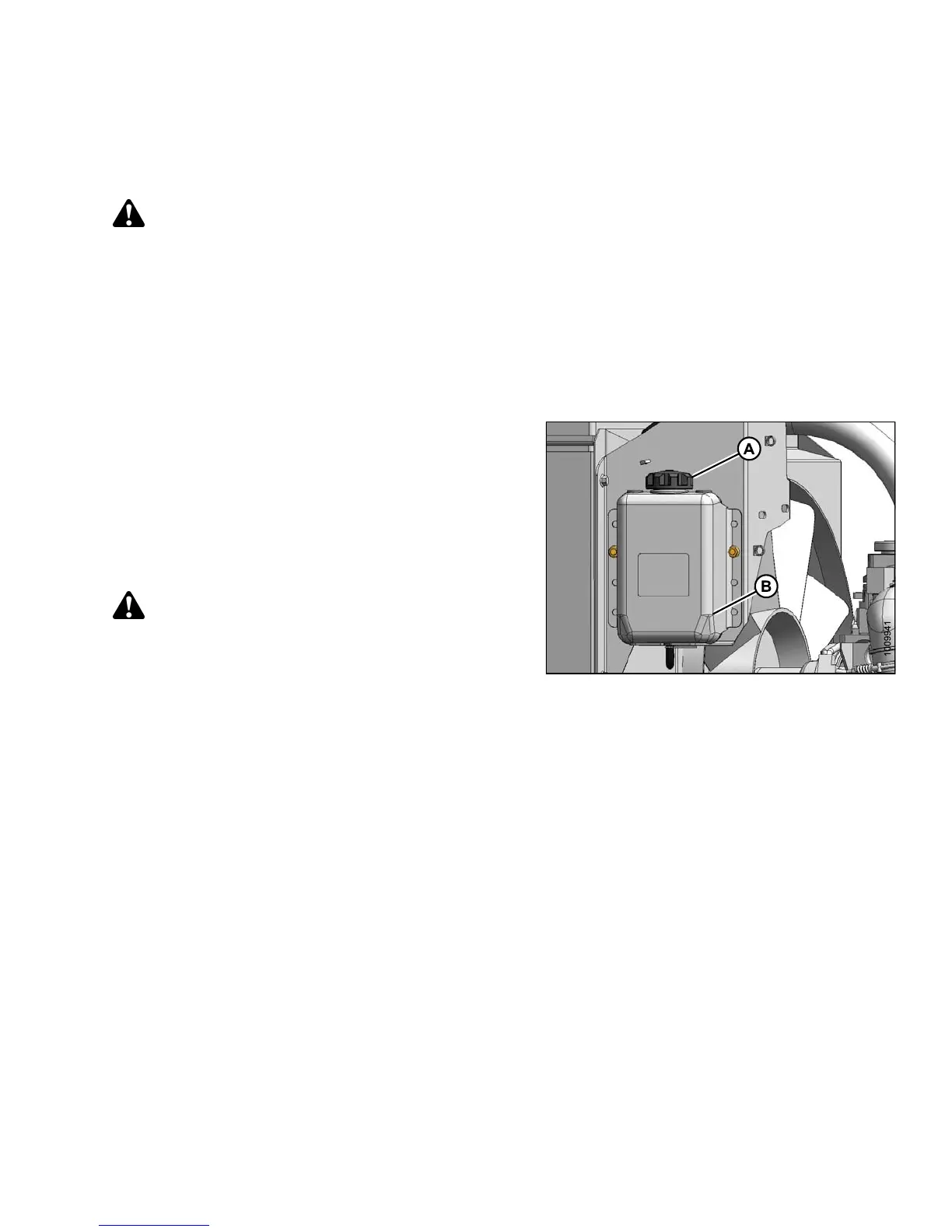3. Remove the ca p (A) from coo lant recovery t ank (B).