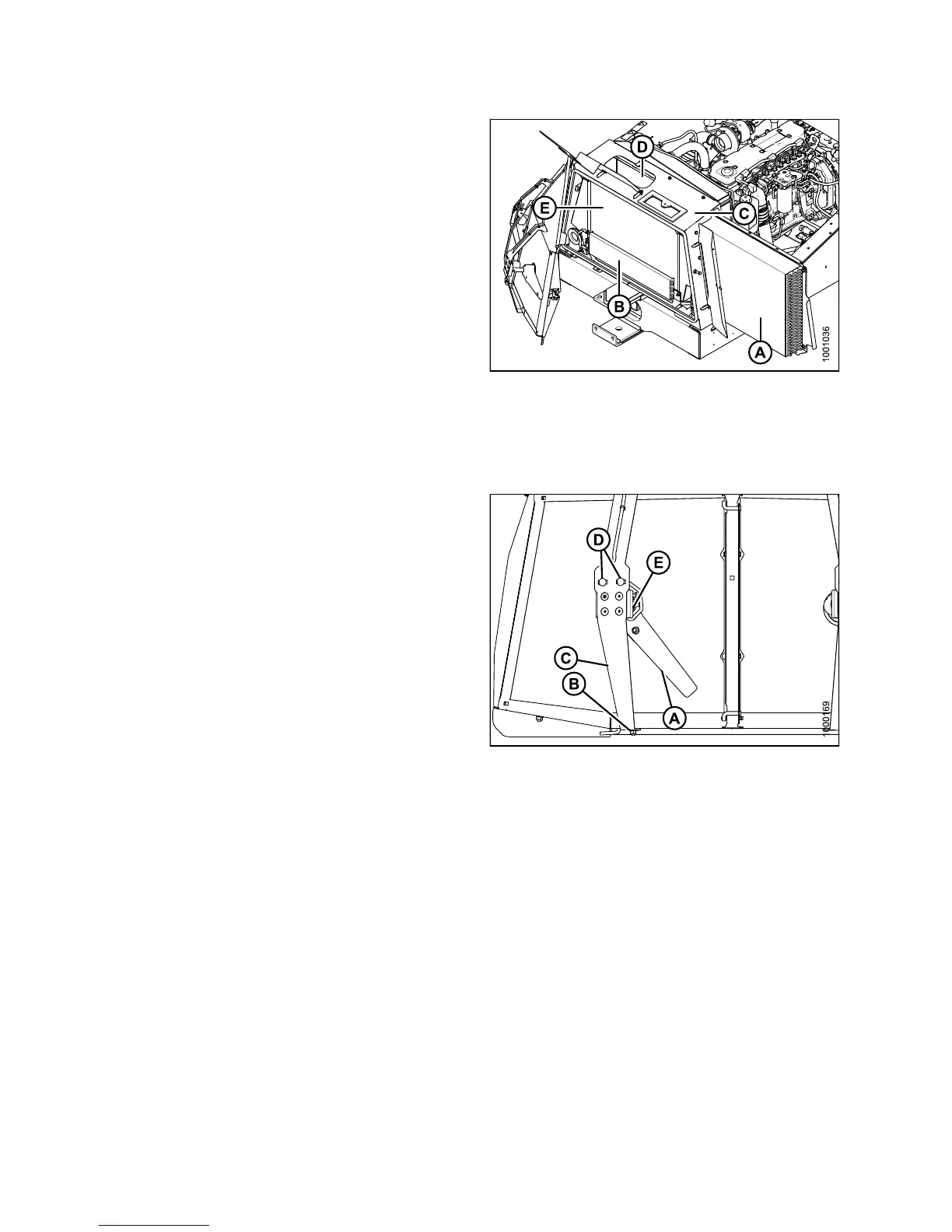 charge air cooler (E), fuel cooler (B), and cooling