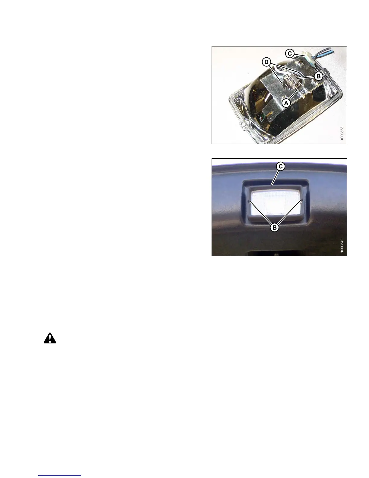 7. Match slots on new bulb (B) with lugs (D) in optical unit