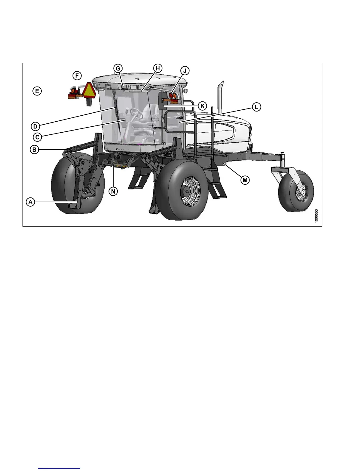 A - Header Lift Leg B - Header Float Springs C - Operator’s Station
