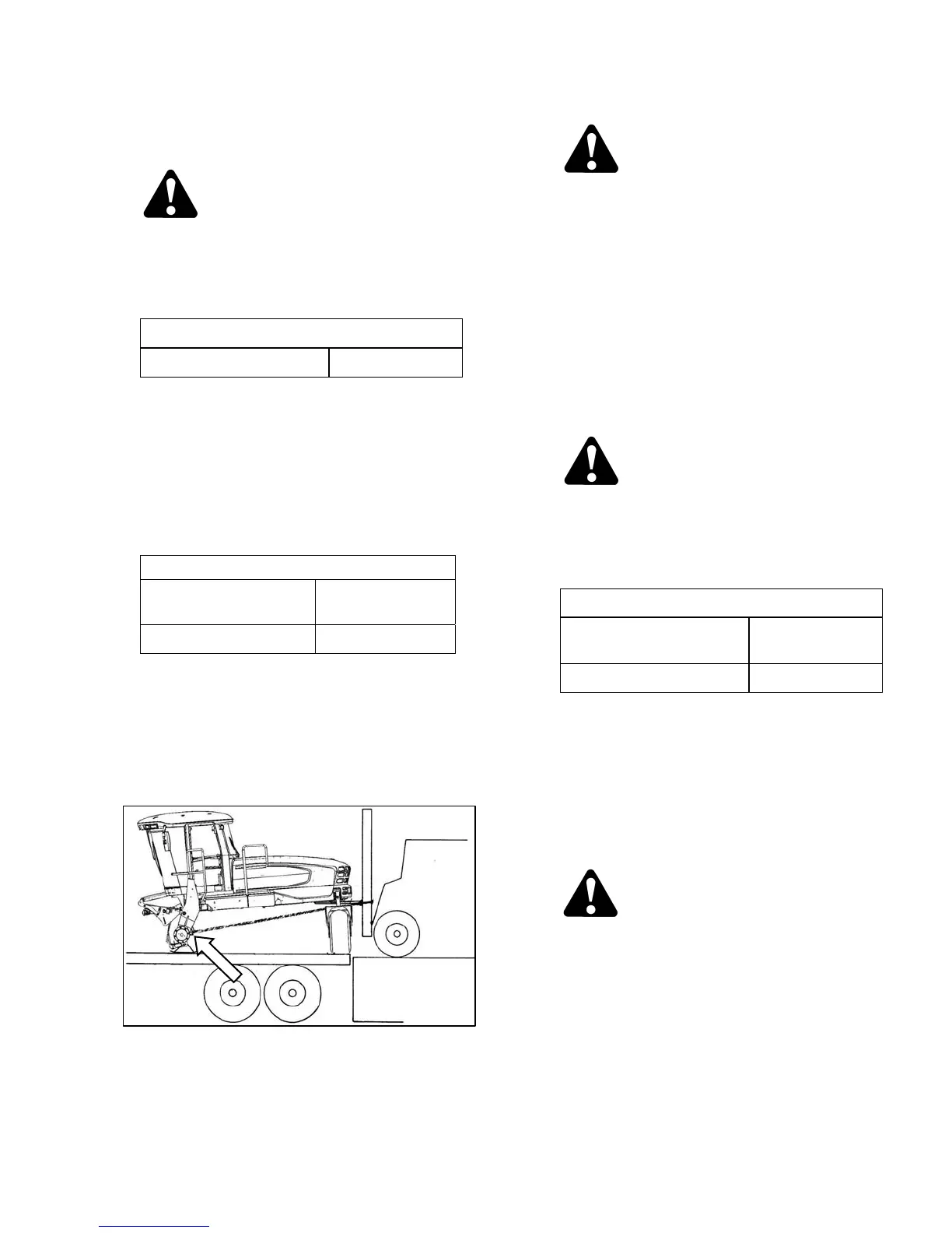 d. Position forklift up to rear of windrower, and place