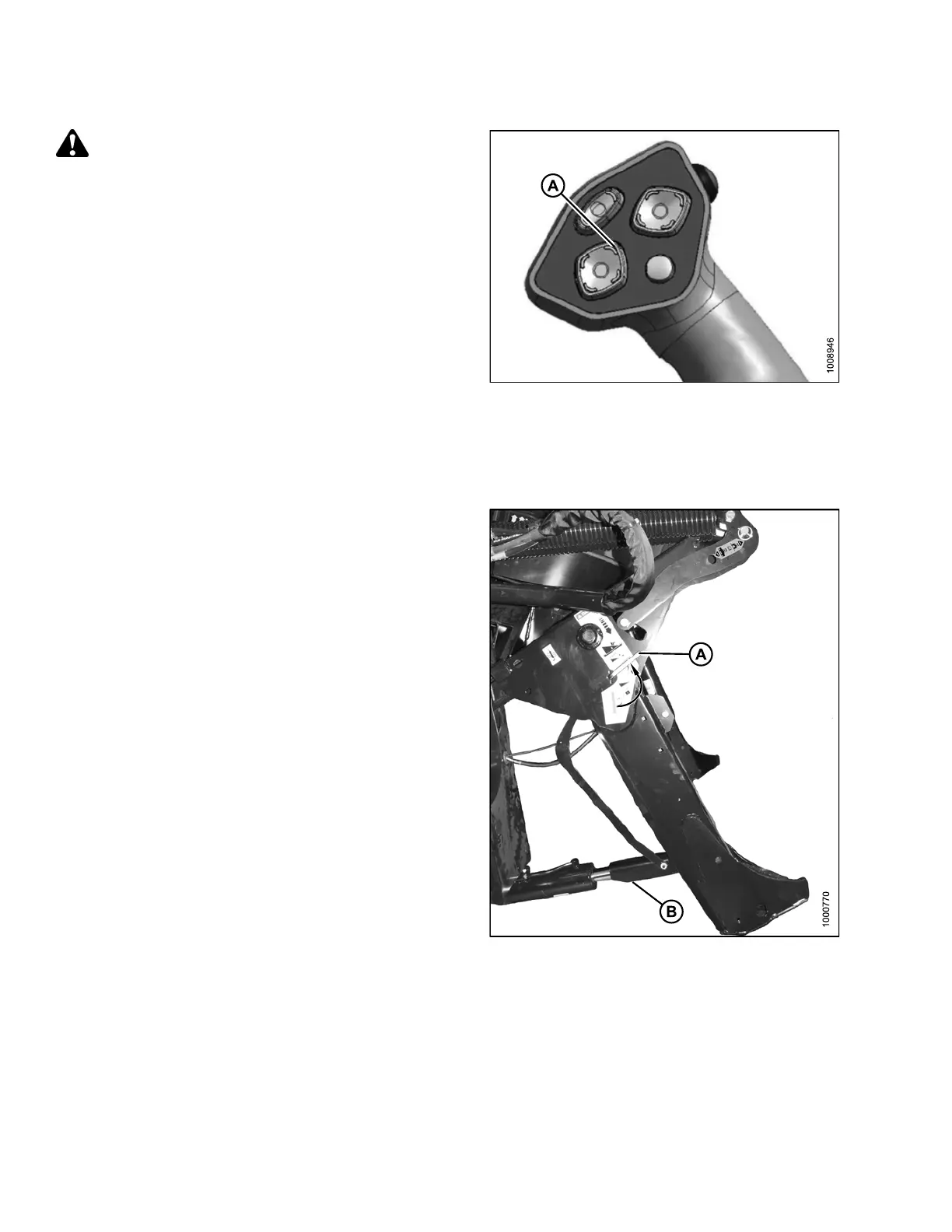 9. Press the HEADER UP switch (A) to raise header to