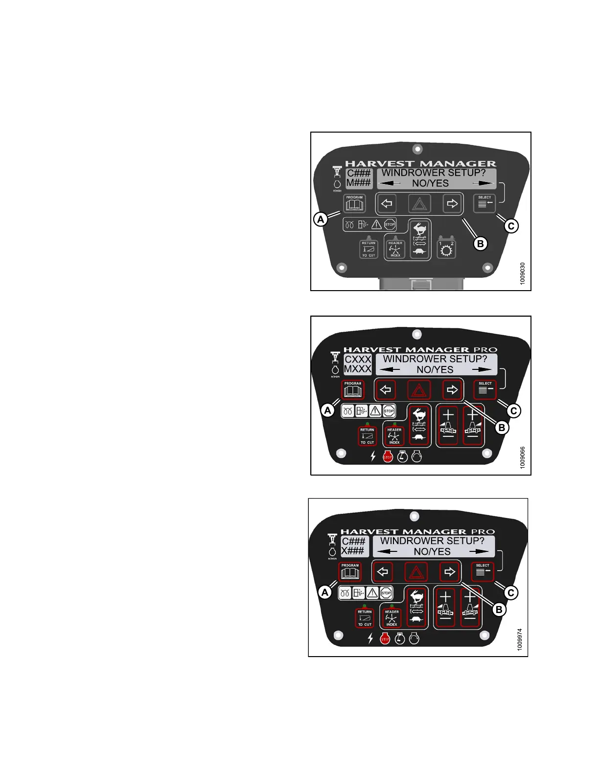 • WINDROWER SETUP? is displayed on the