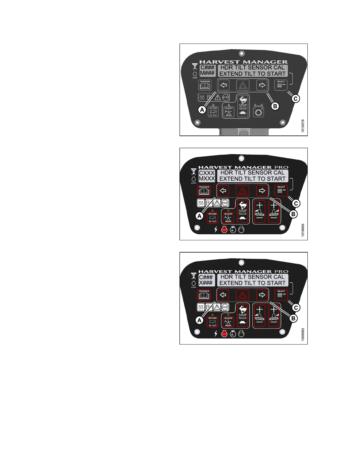 5. Press left (A) or right (B) arrow until HEADER TILT is