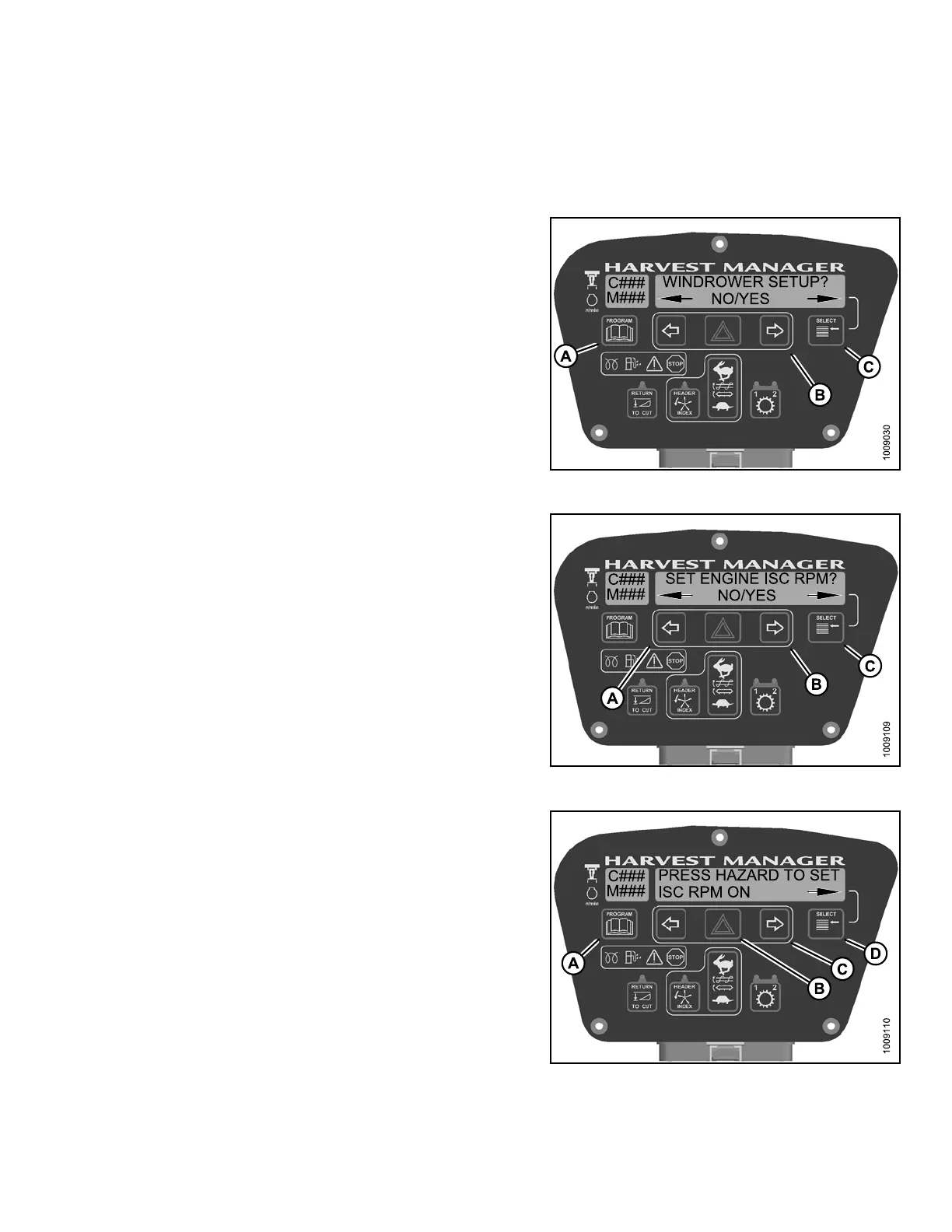 4. Press SELECT (C) until SET EN GINE ISC RP M? is