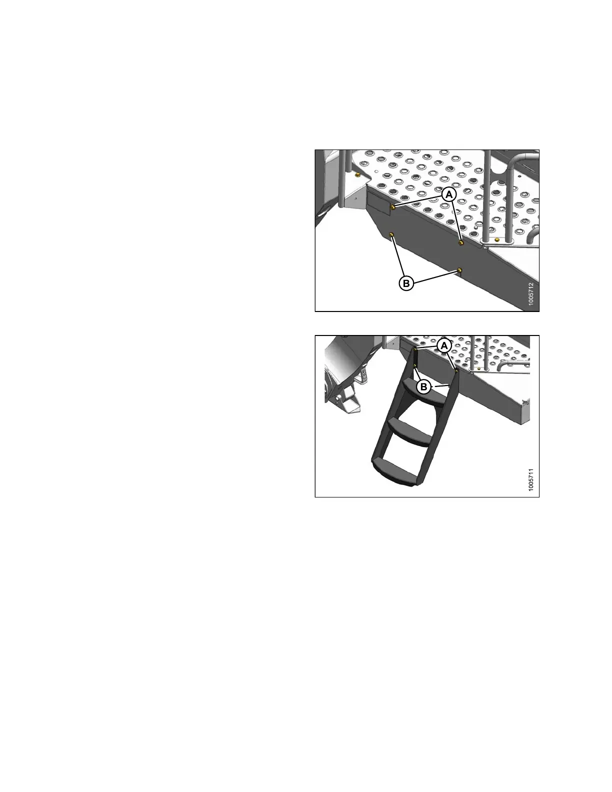 4. Install two bolts (A) in upper holes of step and platform.