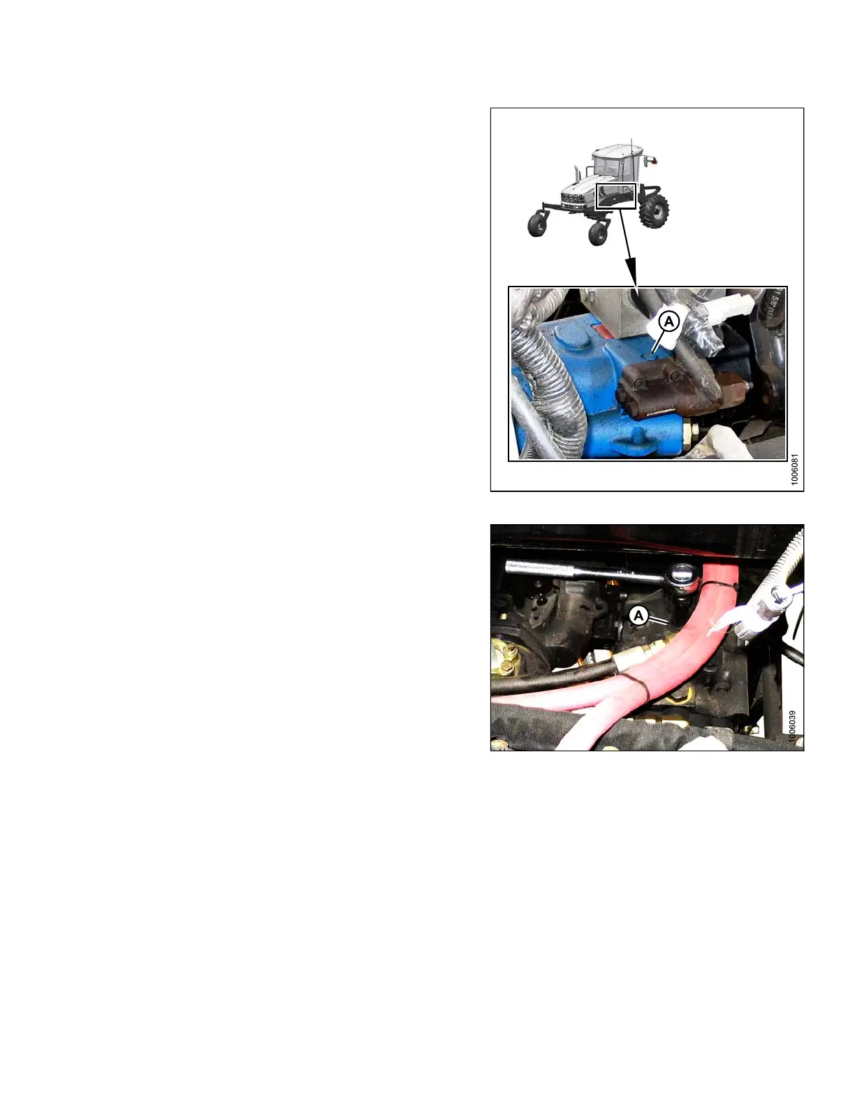 6. Loosen plug (A) to bleed the pump housing. Retighten