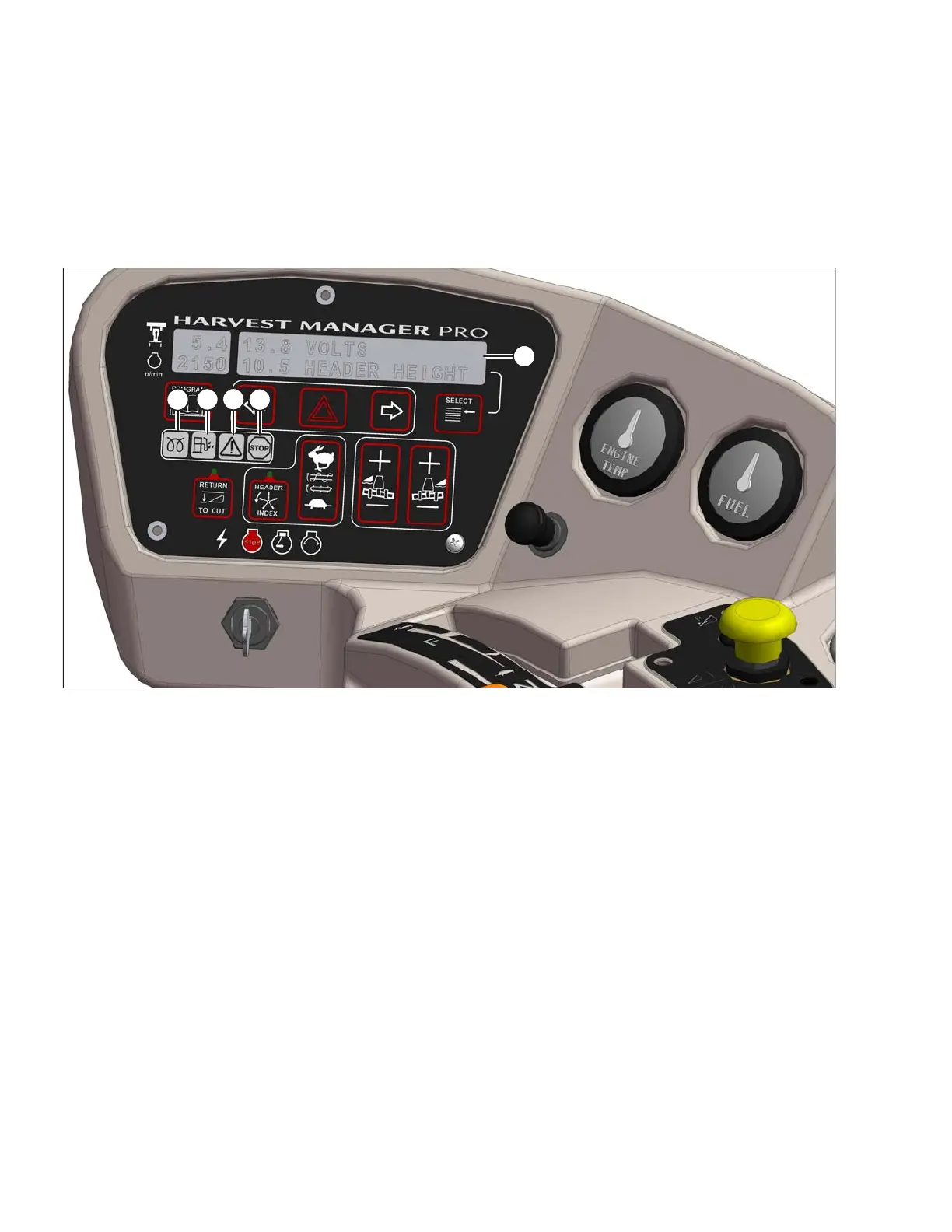 • ENGINE PRE-HEAT: Illuminates yellow. Wait to start engine.