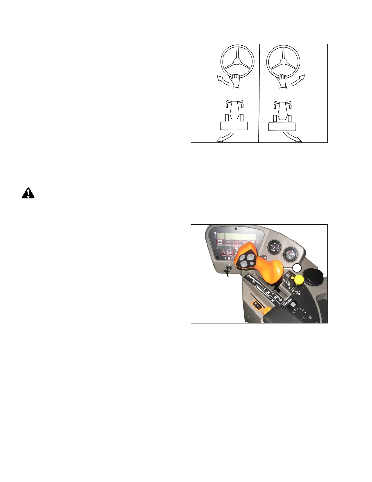 Be sure area is clear before making turns. Although windrower pivots on the spot, the ends of the header
