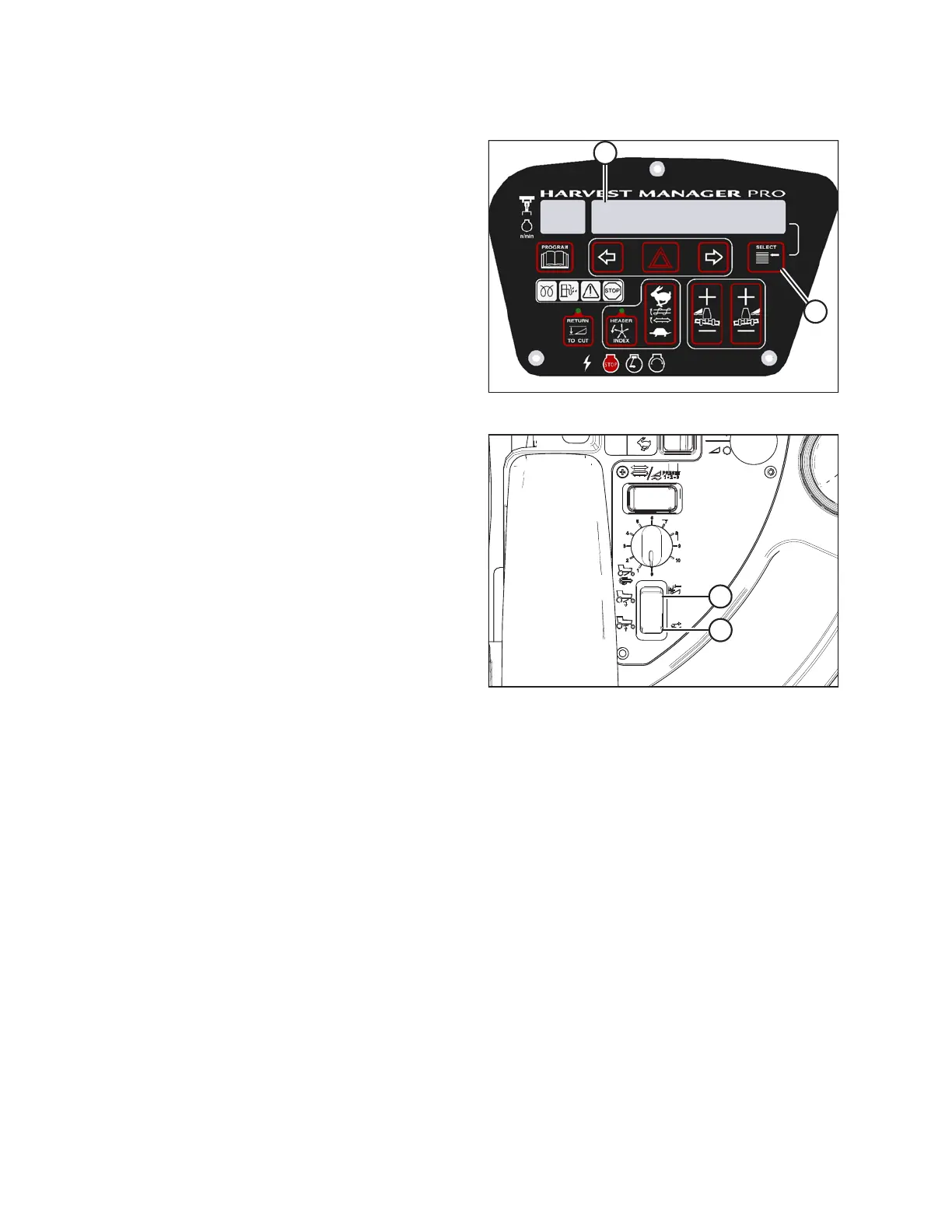 • When ground speed is faster than 1.6 km/h (1 mph) and the HEADER ENGAGE switch is OFF, the swath