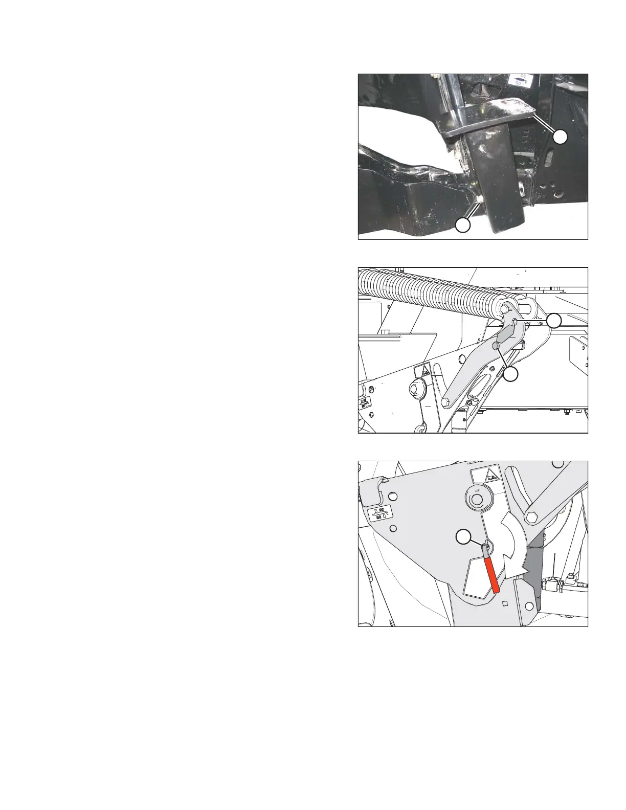 16. Remove the clevis pin from storage position (B) in