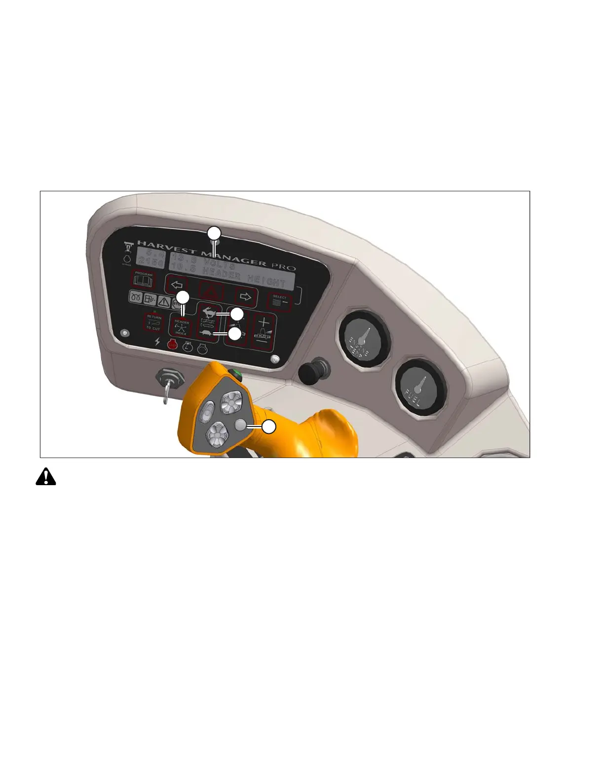 4. Press DISPLAY SELECTOR switch (E) on the ground speed lever (GSL) or press FAST (C) or SLOW (D) on