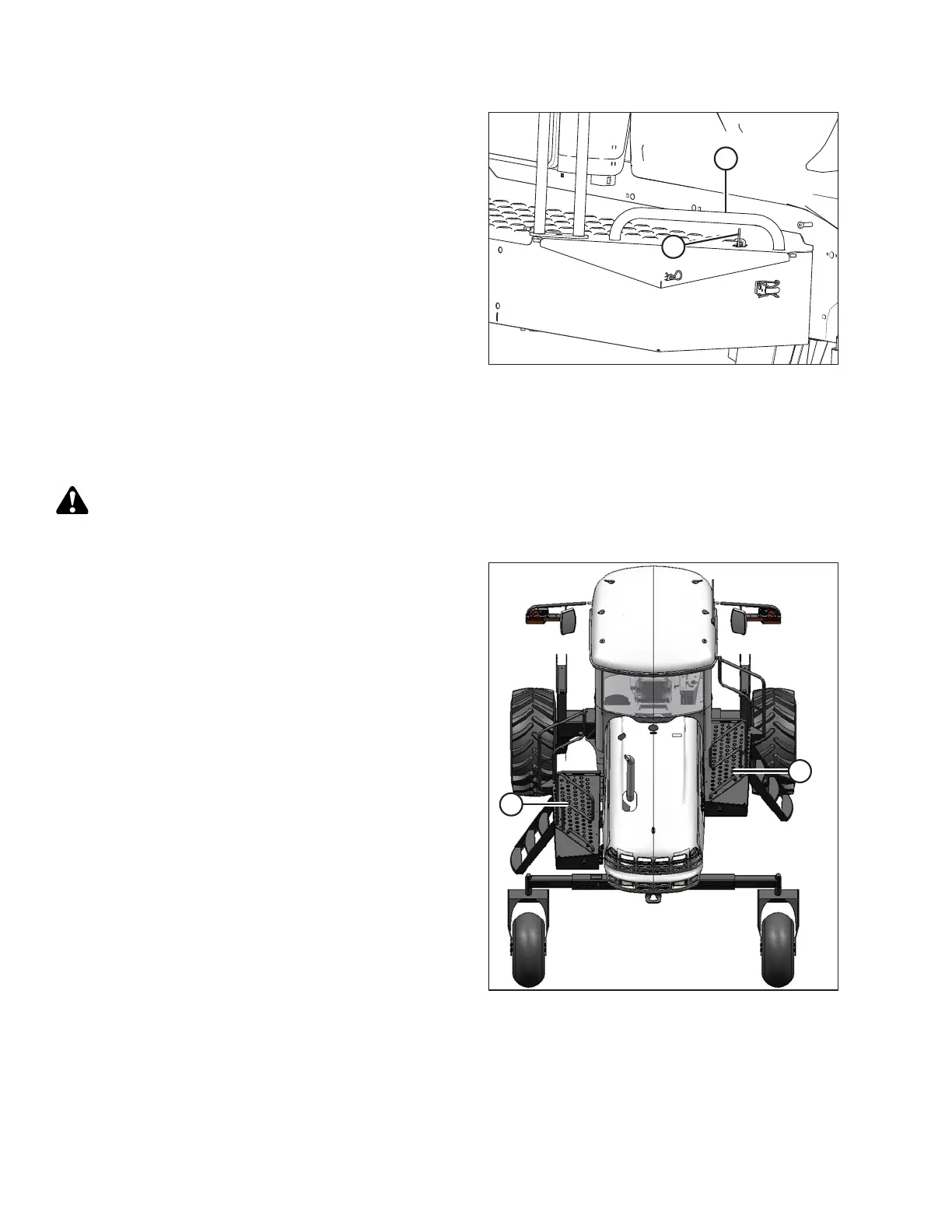 To improve access to the hydraulics plumbing or battery, the platforms can be swung away from the windrower.