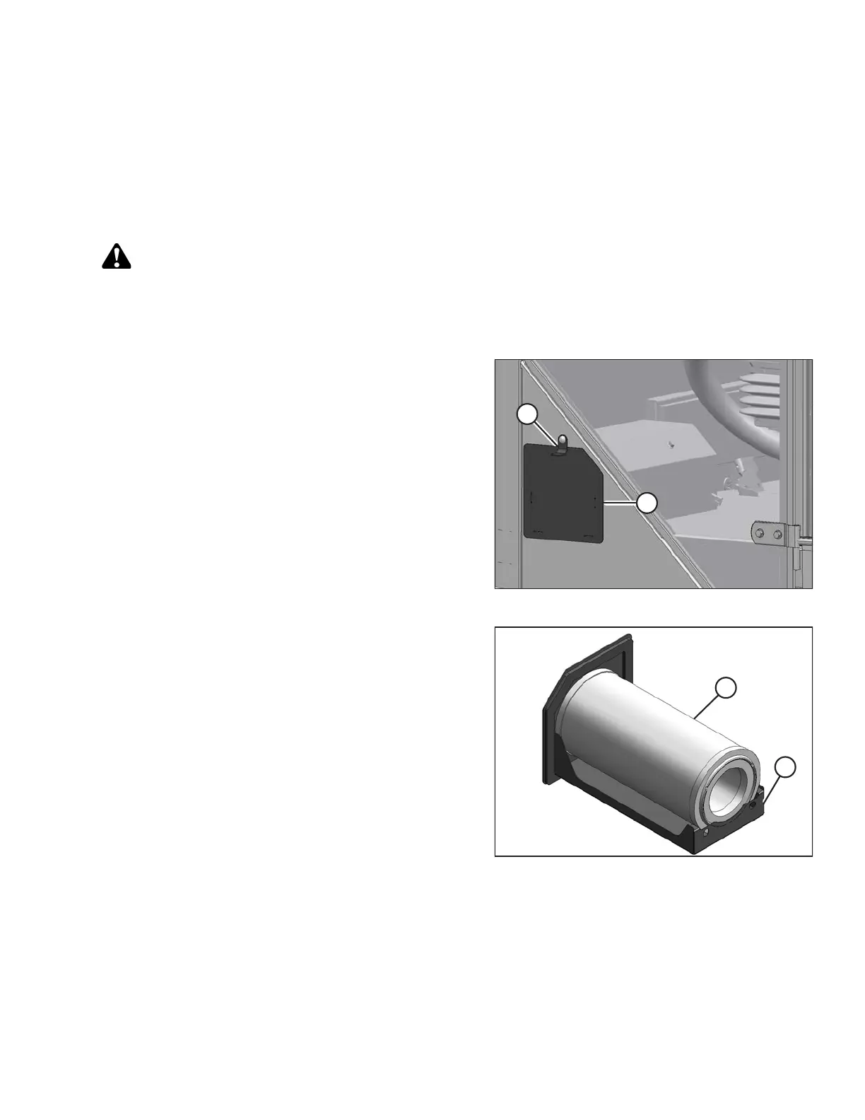 The fresh air filter is located outside the right rear of the cab and should be serviced every 50 hours under normal