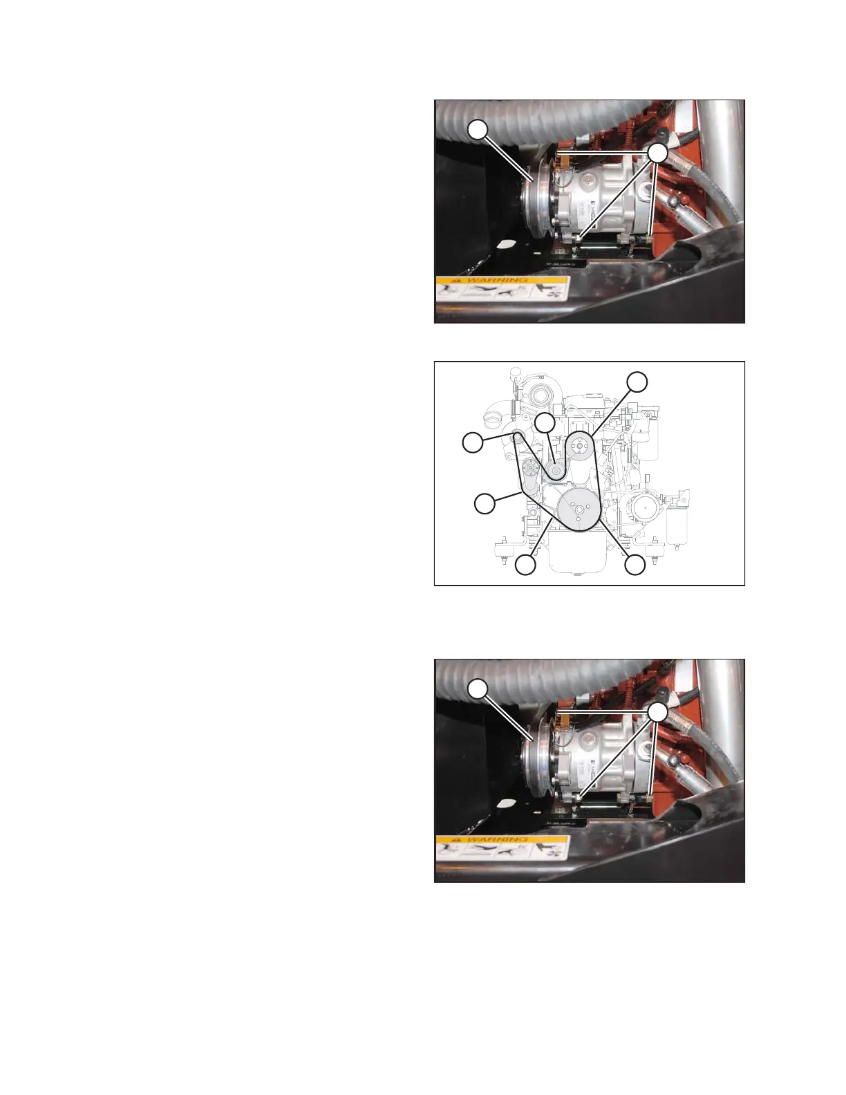 8. Remove belt in order 1–2–3 as shown. Route fan belt