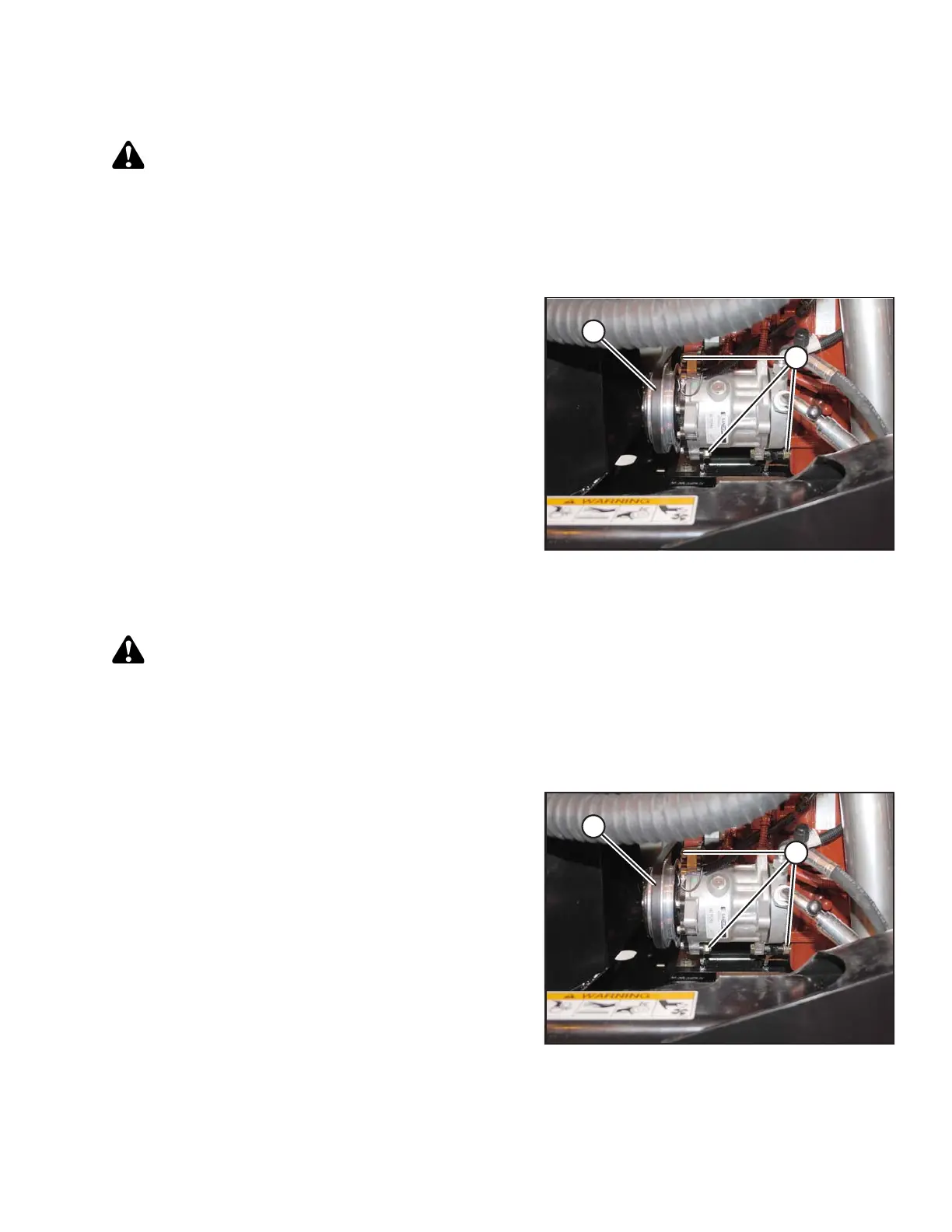 5. Tighten compressor mounting hardware (B).