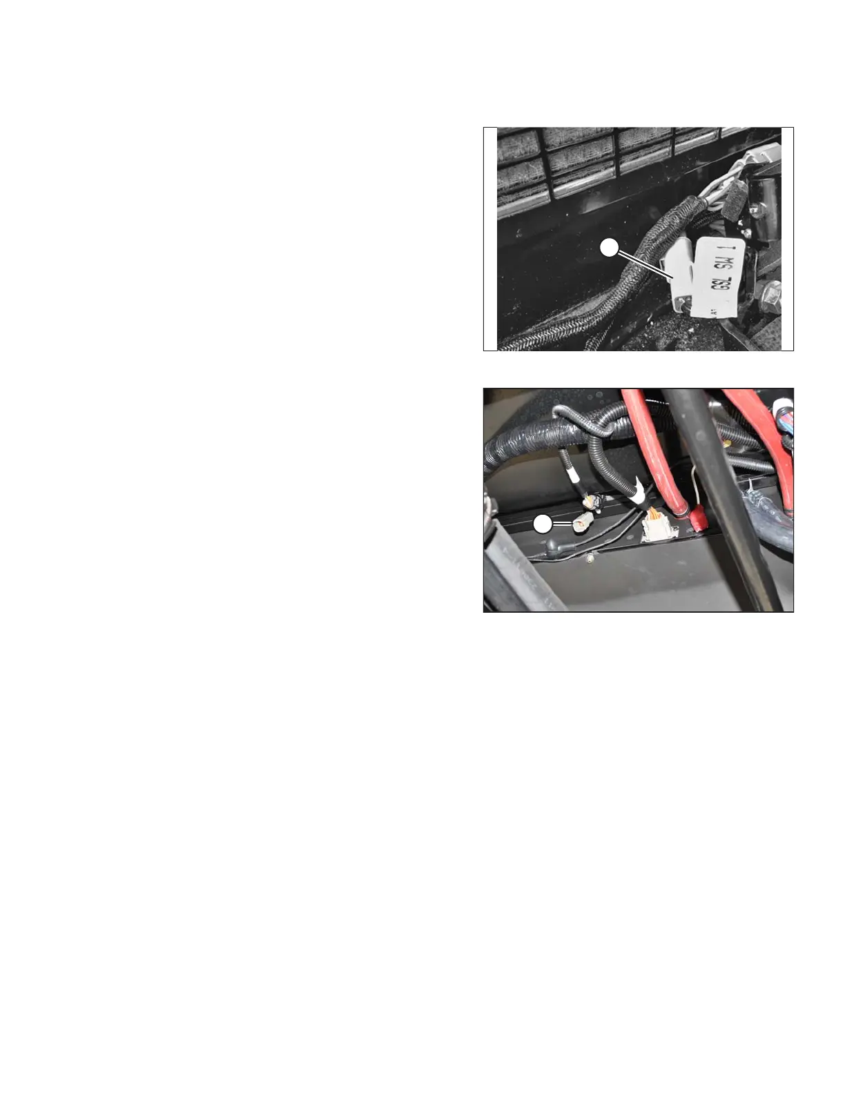 The autosteer engagement switch harness has two connectors and is located as follows: