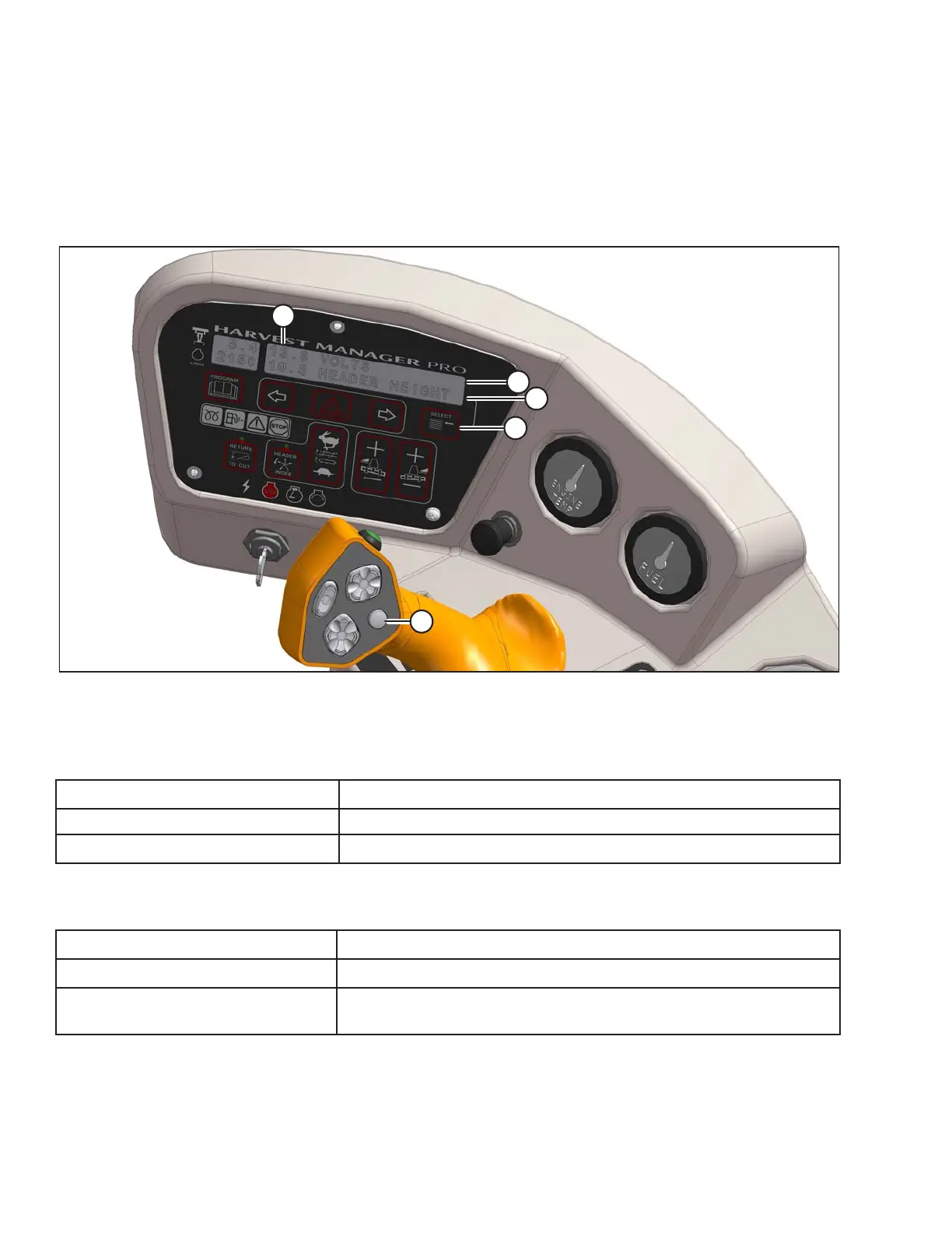 The cab display module (CDM) and the windrower control module (WCM) provide information on several functions