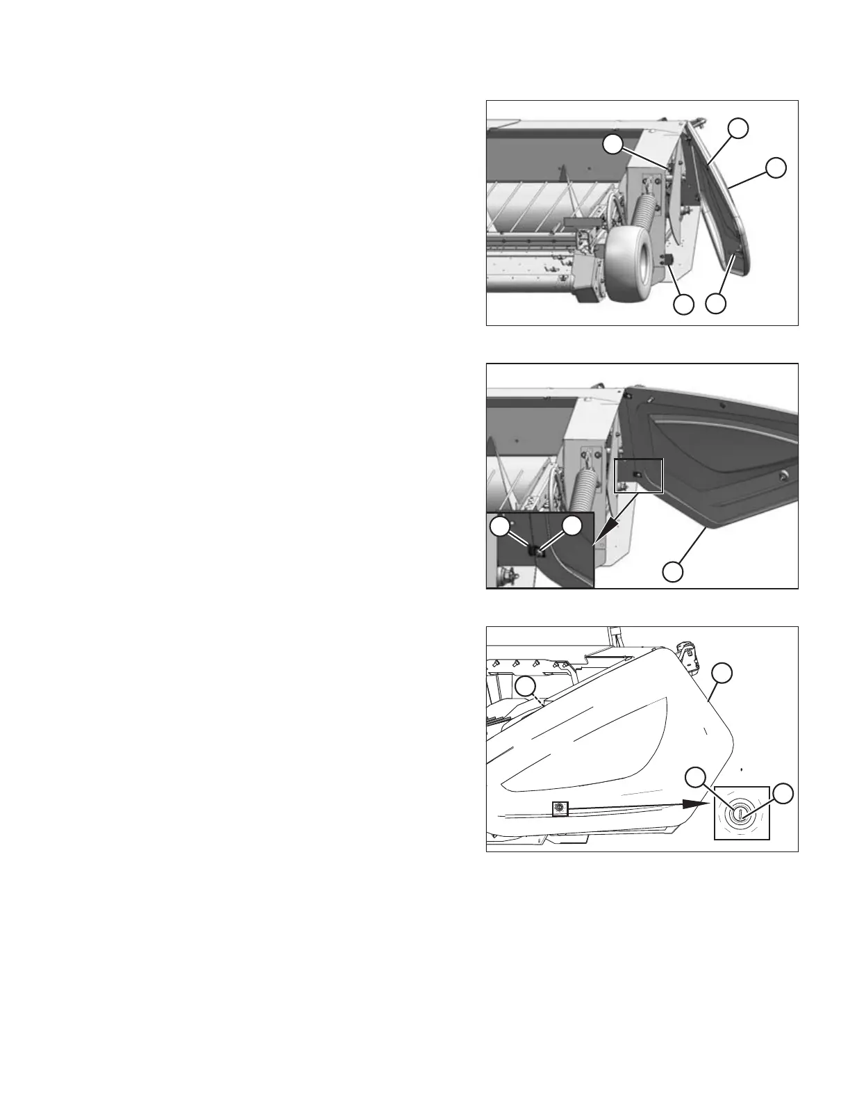 2. Close endshield (A) ensuring magnet (B) and stop (C)