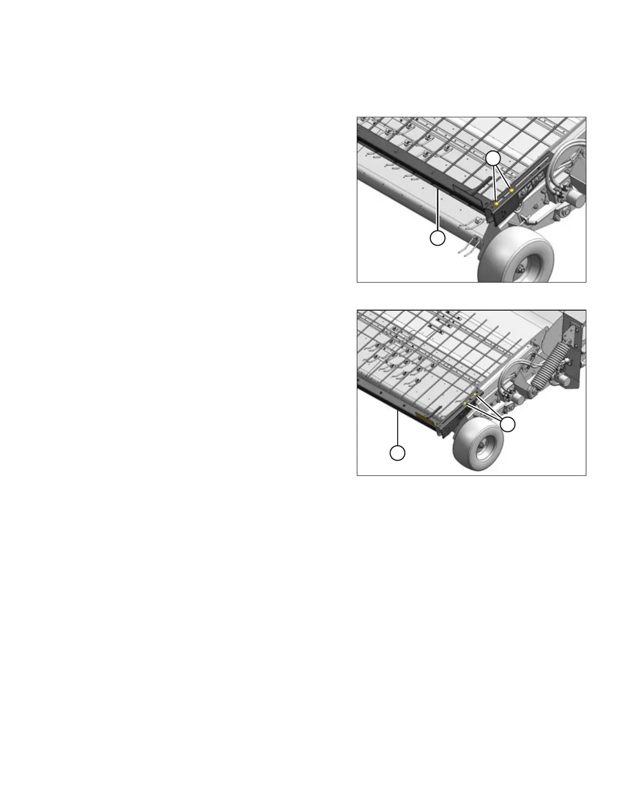 4. Tighten bolts (B) in hold-down arms.