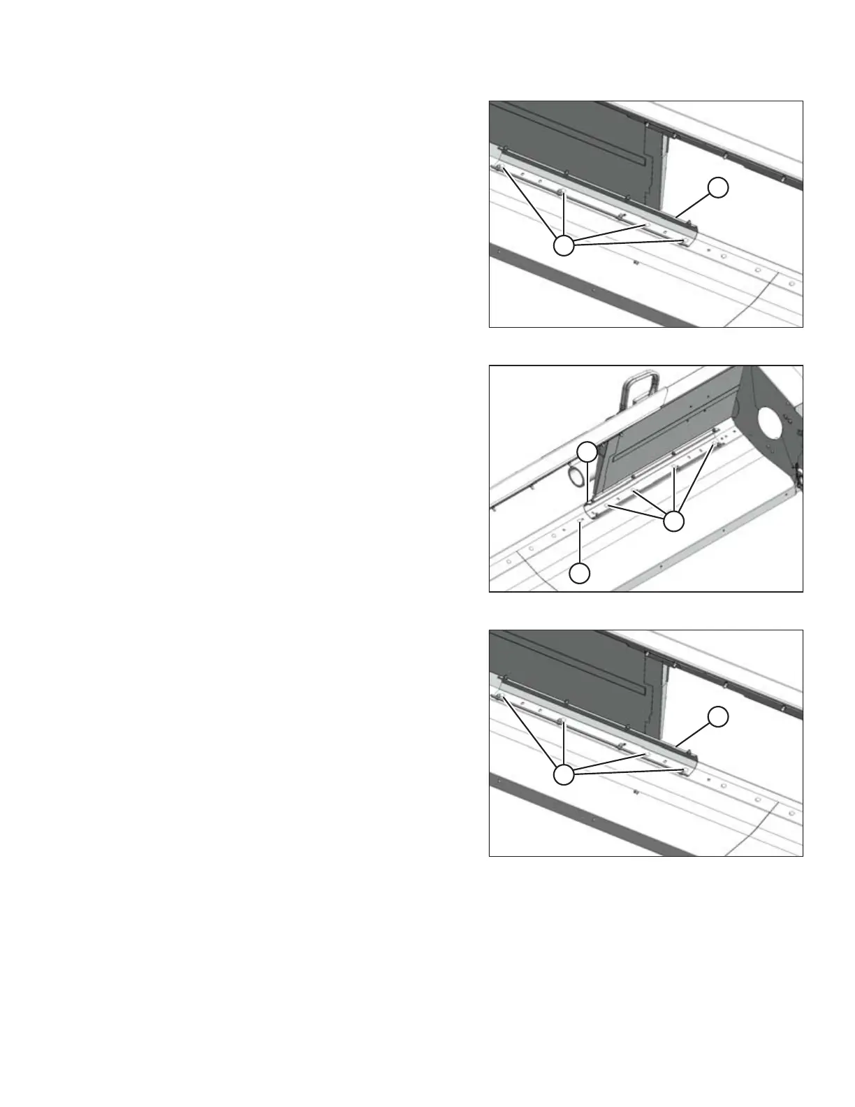 assembly (B) mounting holes line up with the frame.