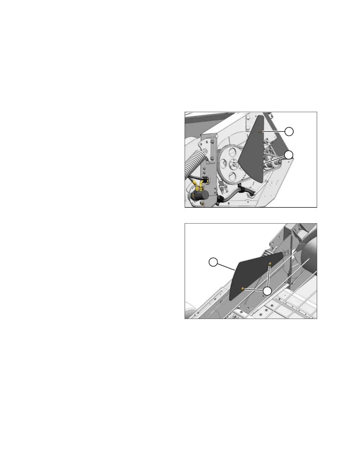 If crop deflectors will not be installed, remove them from the auger drive compartment and store them in the