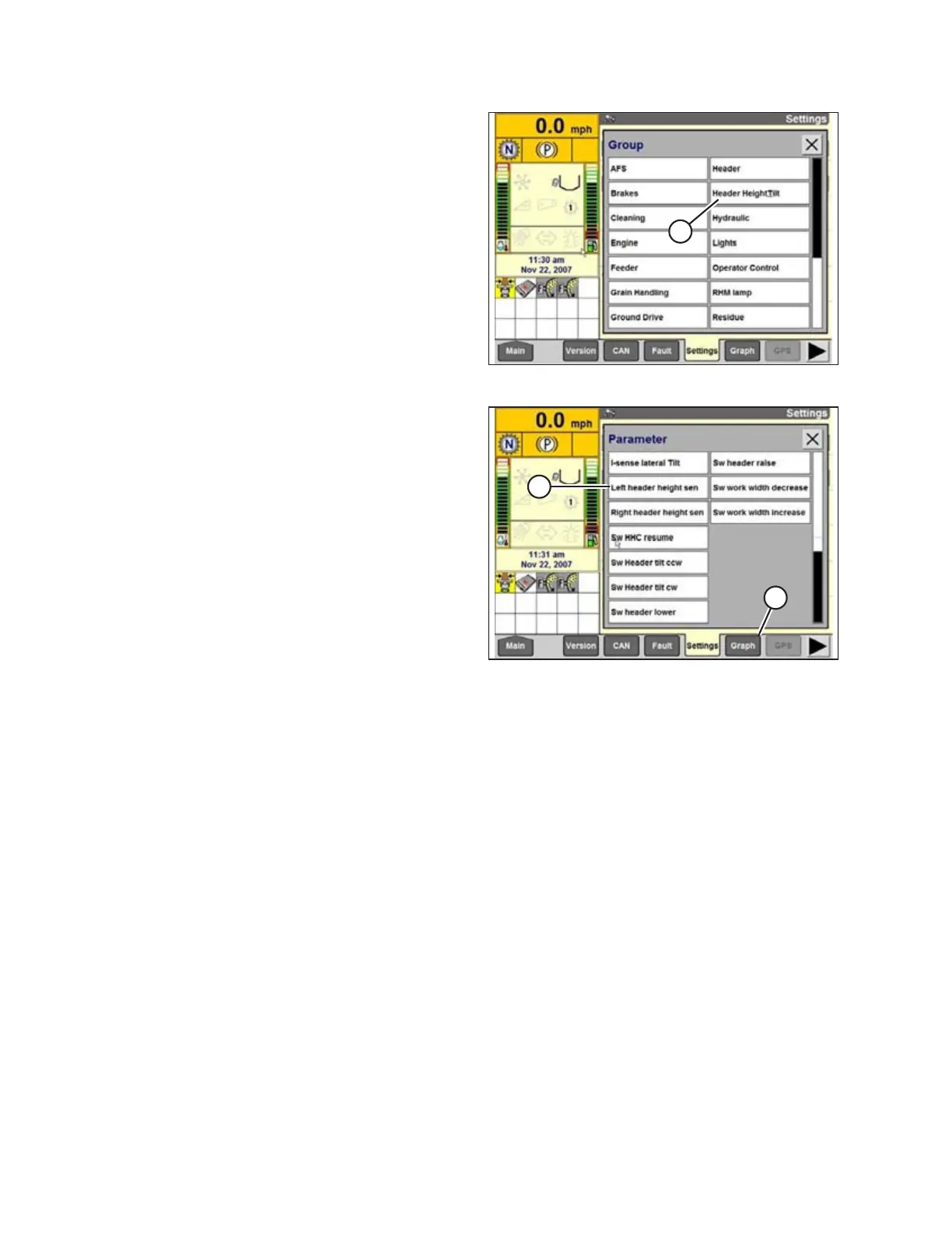 5. Select HEADER HEIGHT/TILT (A). The PARAMETER