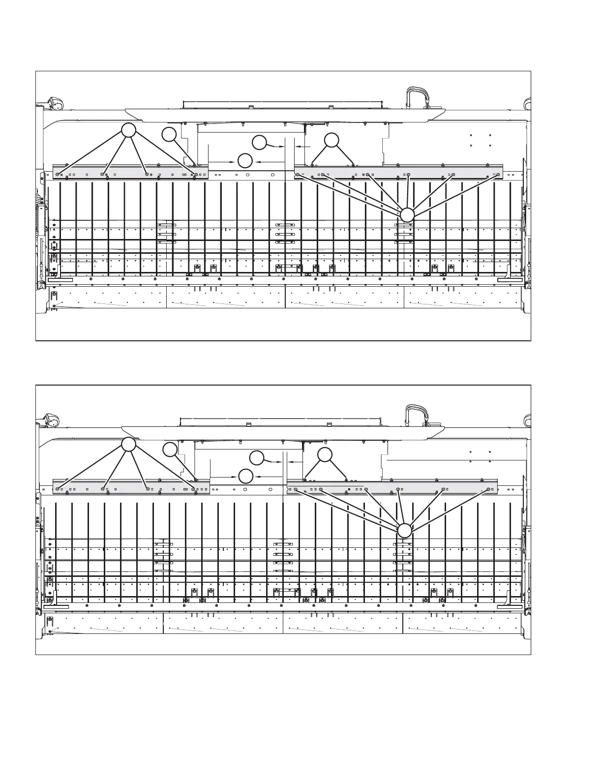 D - Left Stripper Bracket Bolts x 6 E - Left Side Filler Bolts F - Left Stripper to Center of Feed Pan 37 mm