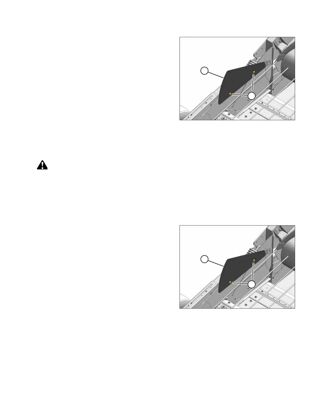 Install crop deflectors to prevent crop from piling up around the hold-down support arm pivot.