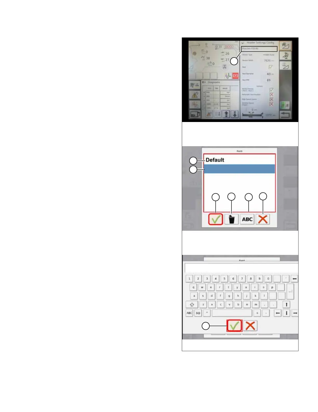 the header list. Touch MacDon header title (B) to