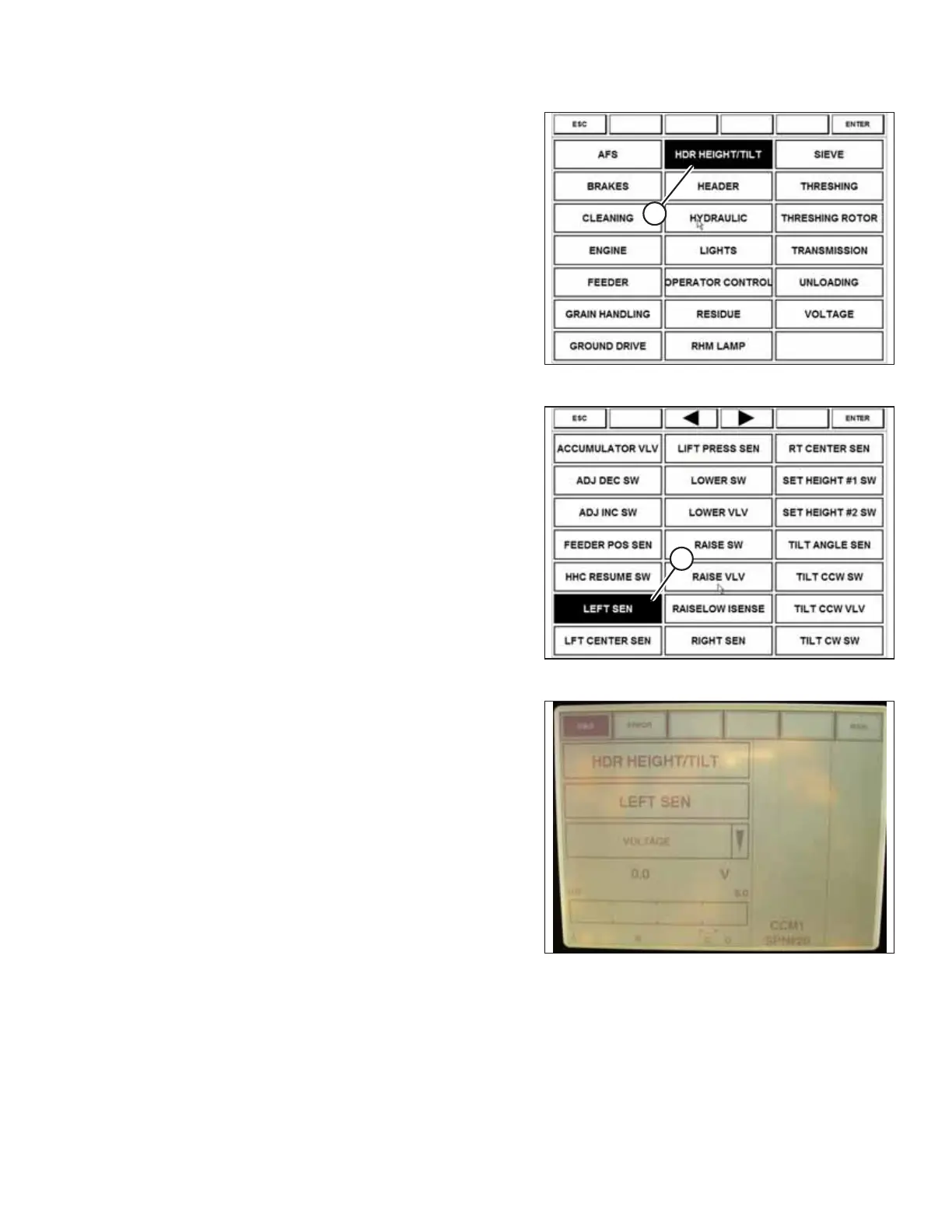 5. Select LEFT SEN (A). The exact voltage is displayed. Raise