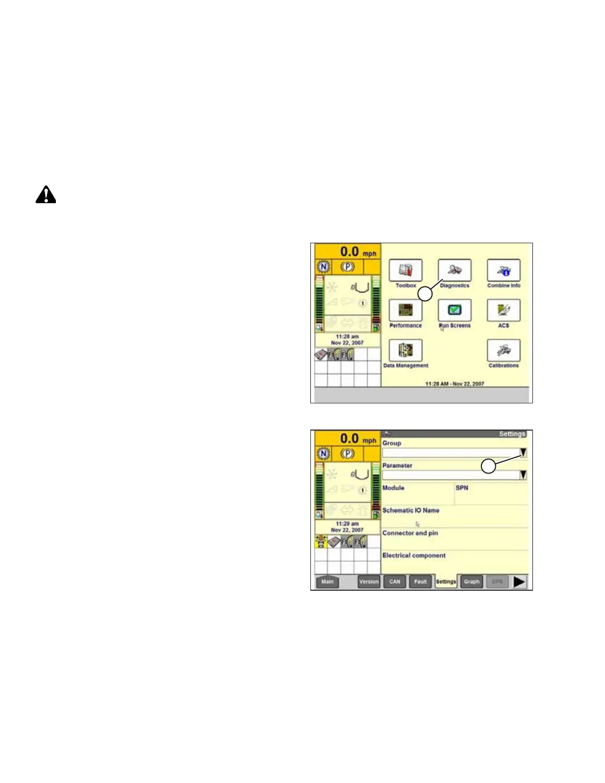 Changes may have been made to the combine controls or the display since this document was published. Refer to the