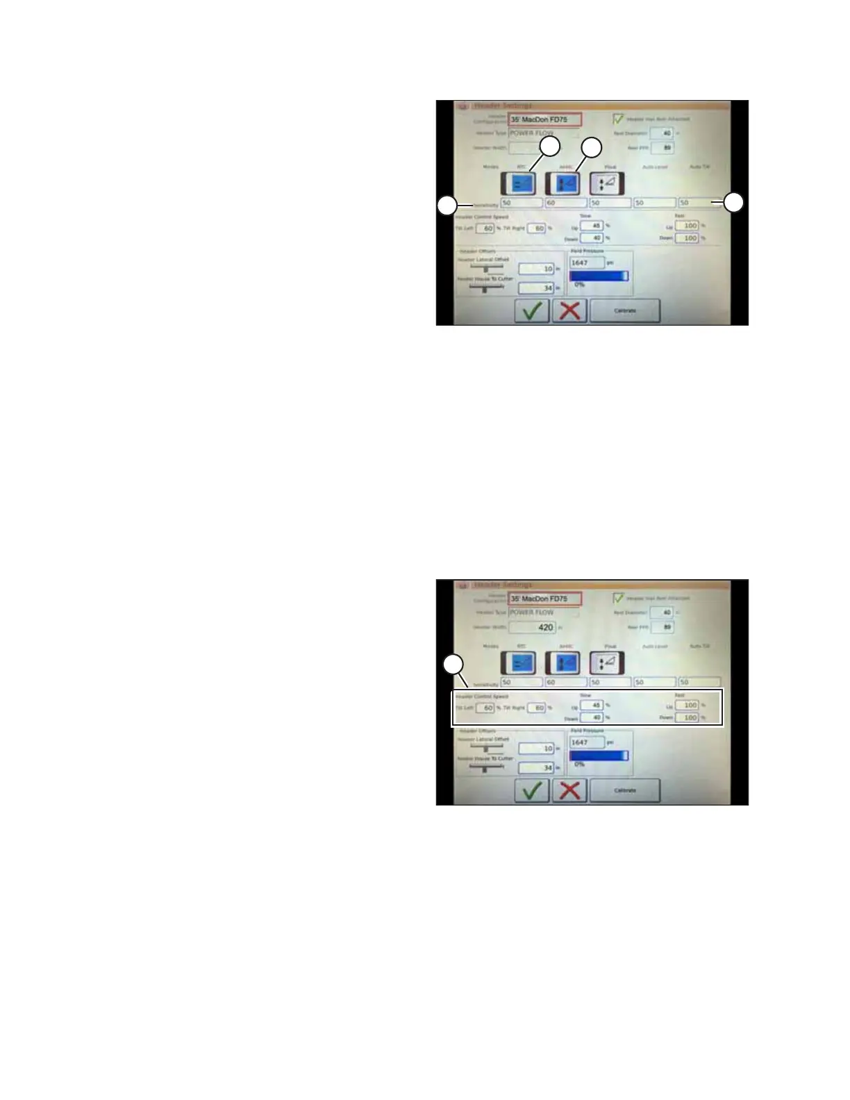 height control functions. For MacDon headers, ensure that