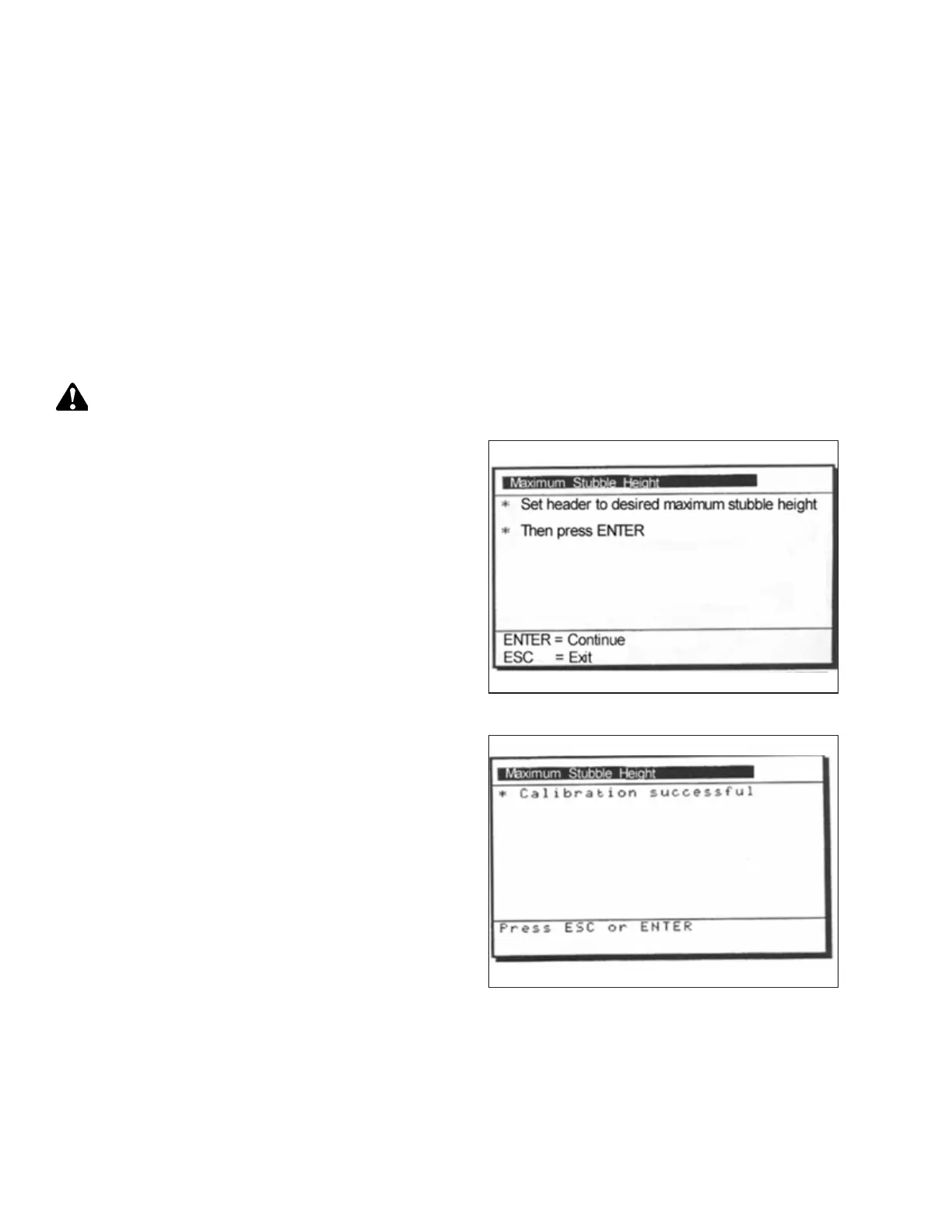 1. Select the MAXIMUM STUBBLE HEIGHT calibration dialog