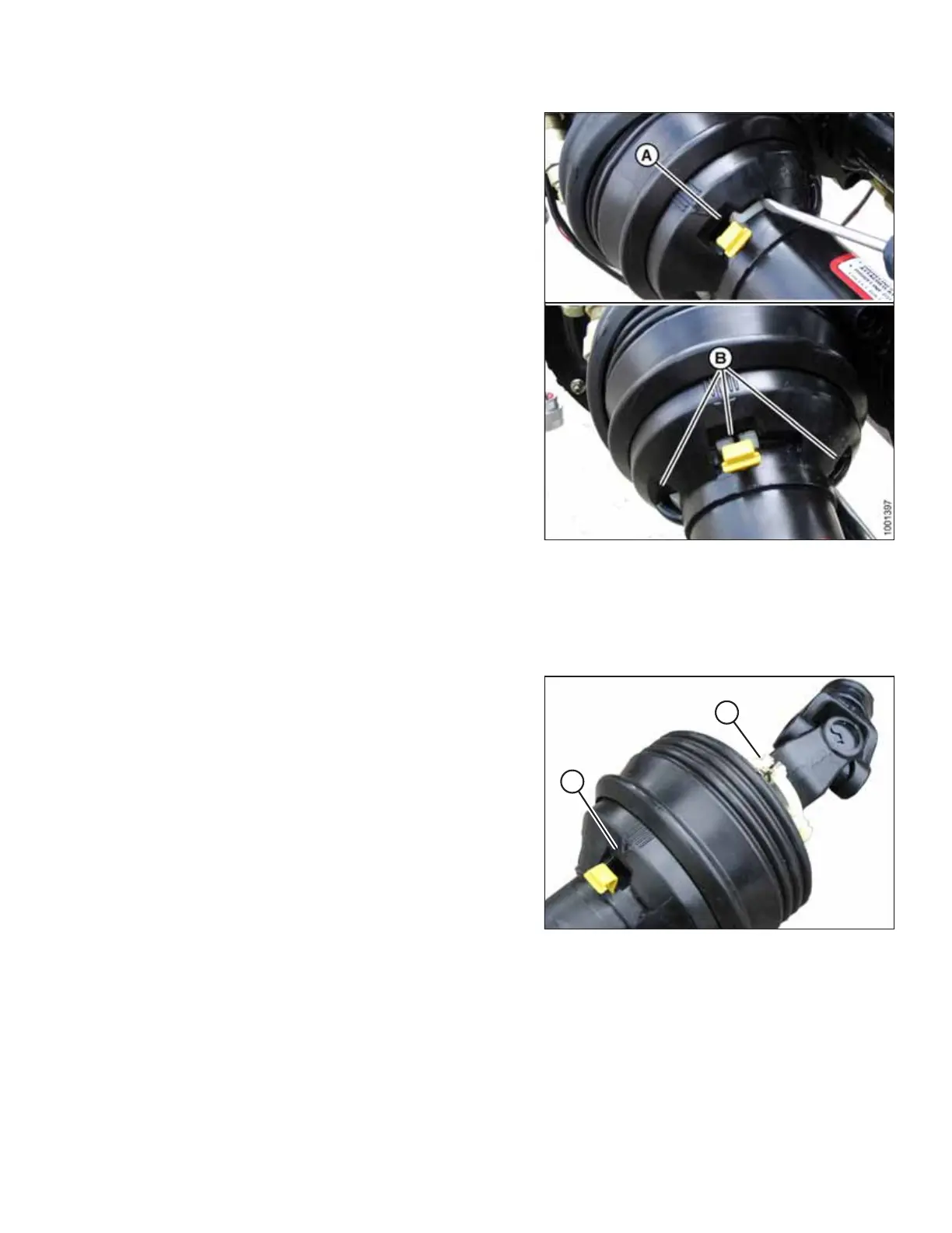 7. Rotate driveline guard locking ring (A) counterclockwise