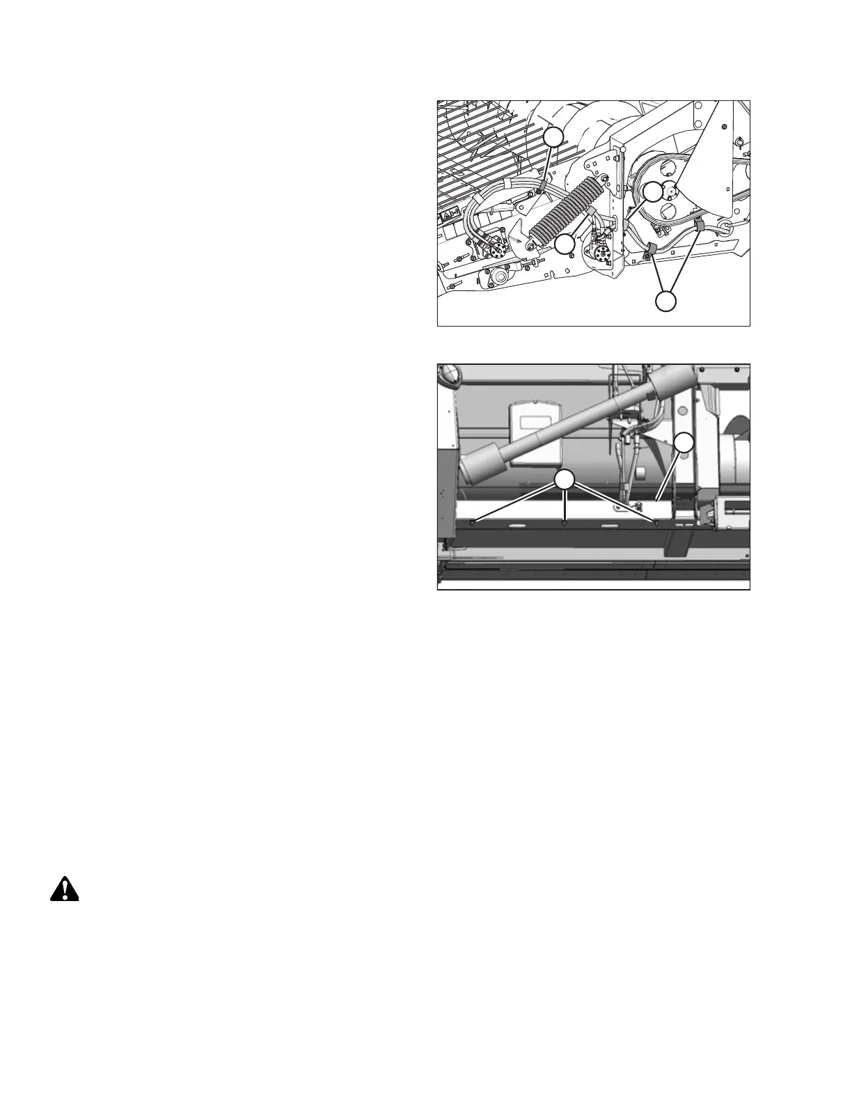 1. Lower the header to the ground, shut down the combine, and remove the key from the ignition.