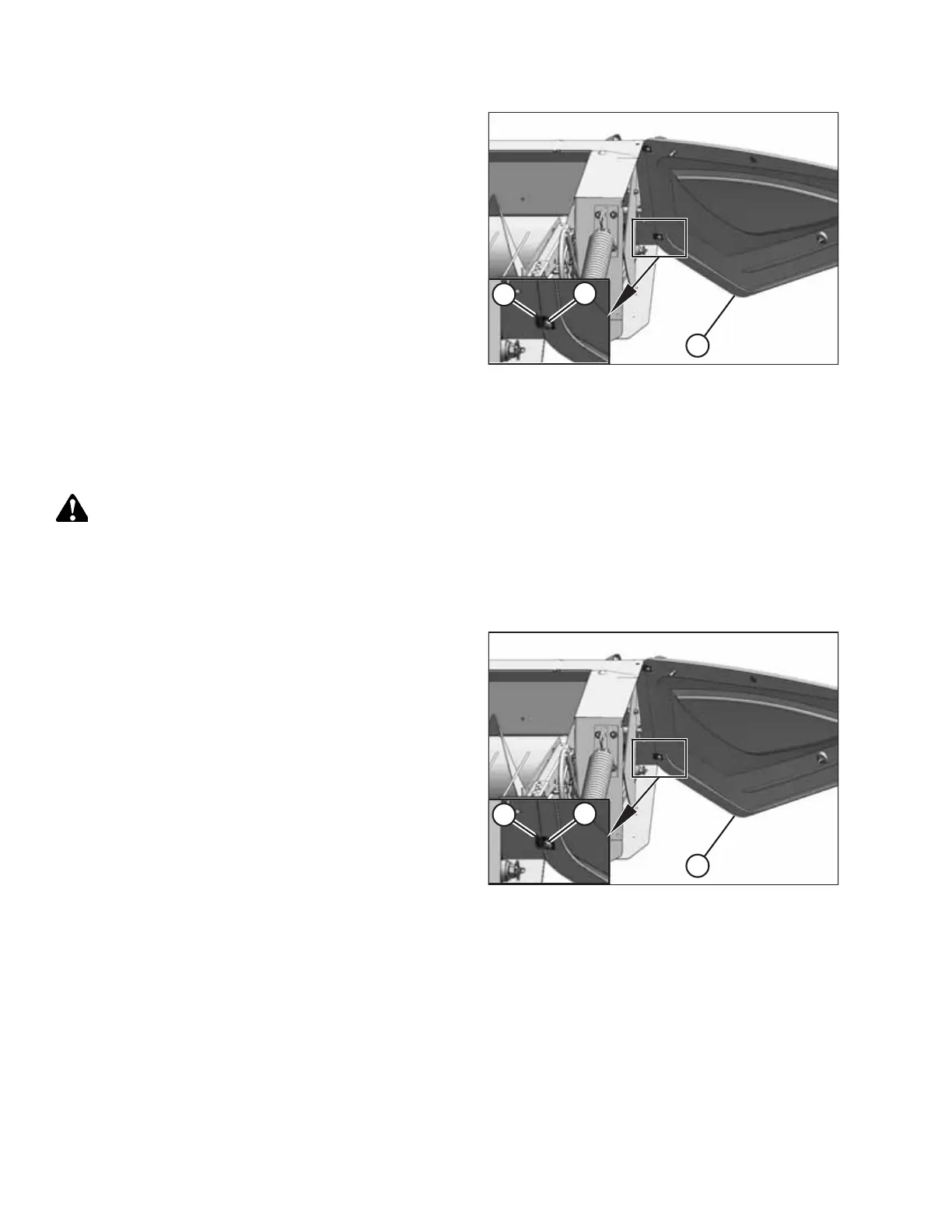 5. Swing endshield (A) fully backward and loosen nuts (B) on