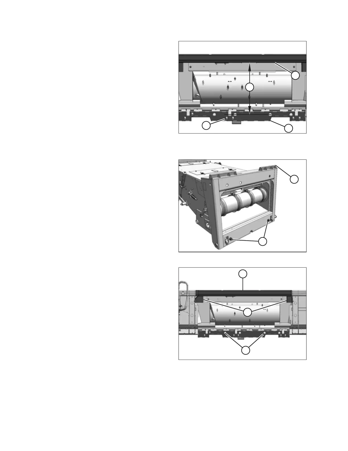 3. If necessary, loosen six bolts (D) and adjust lower beam (C)