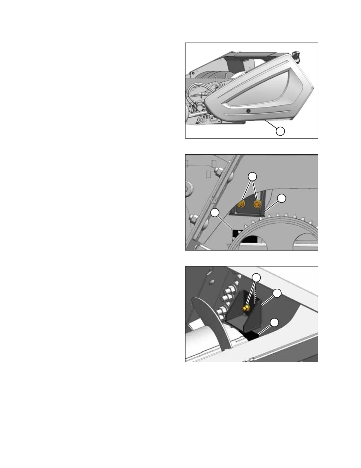 8. Loosen two bolts (A) on auger upstops (B) on the right side