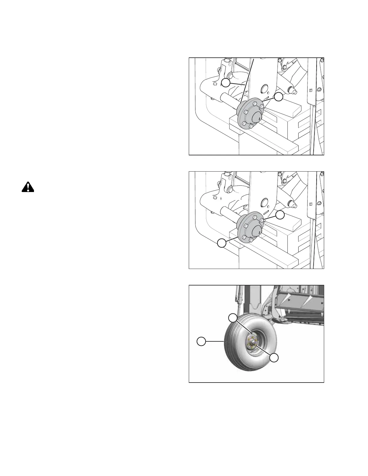 3. Position wheel (A) on the spindle, install bolts (B), and