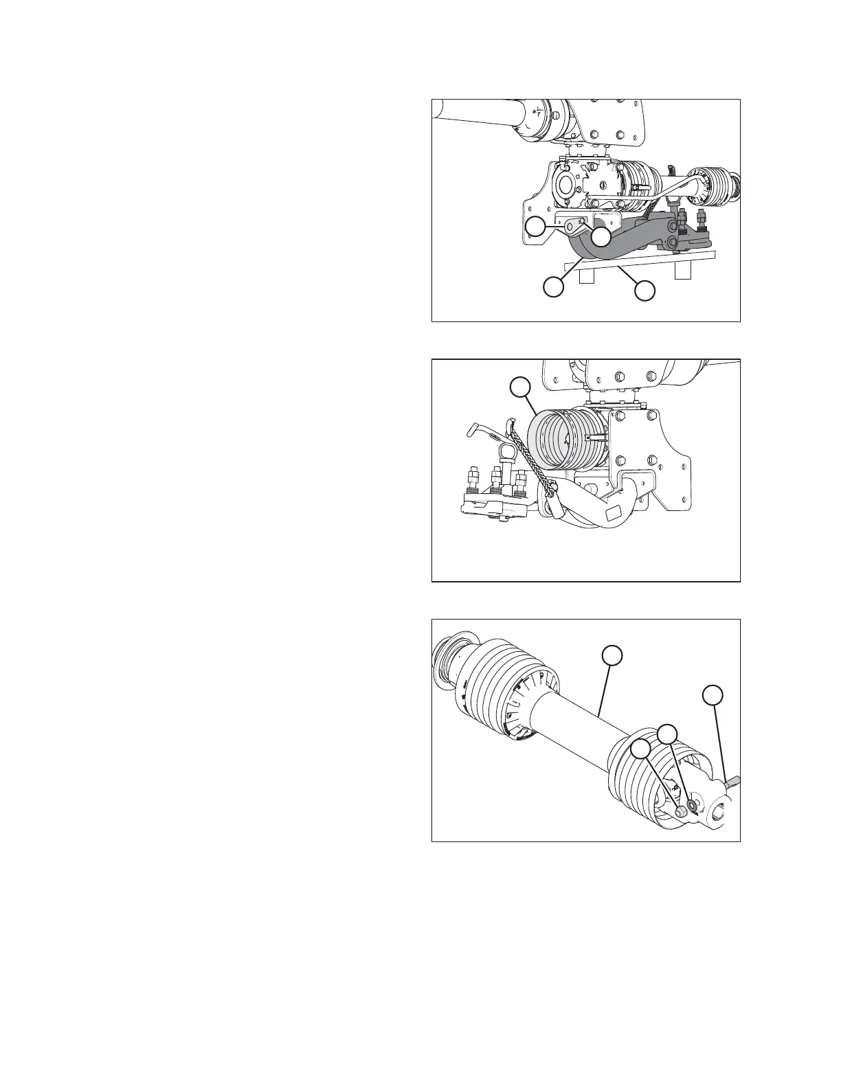 11. Move drawbar hitch (B) so pin (C) can be installed.