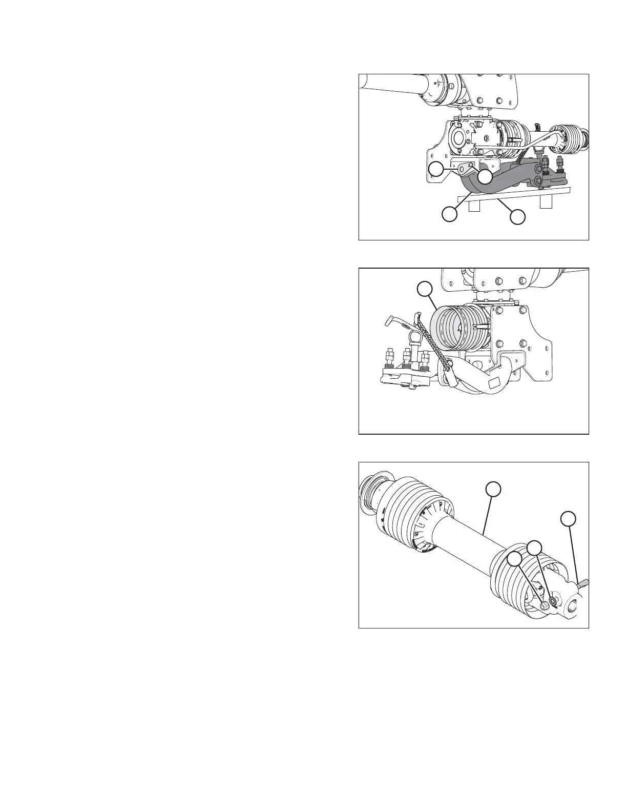11. Move drawbar hitch (B) so pin (C) can be installed.