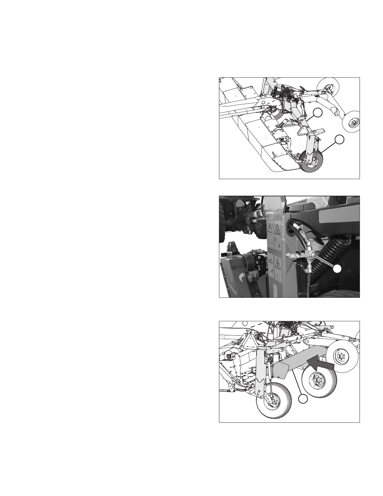 3. Rotate shield (A) and pass it between the field wheels and