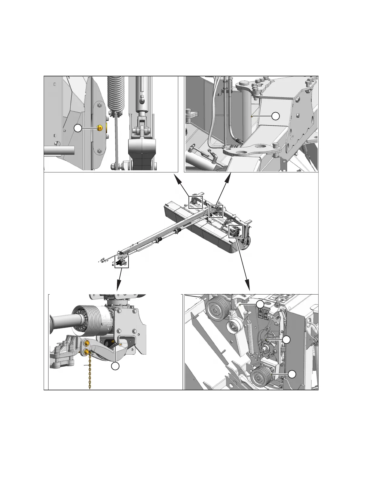 A - Bearing, Finger Conditioner B - Hitch Pivot C - Hitch Swivel