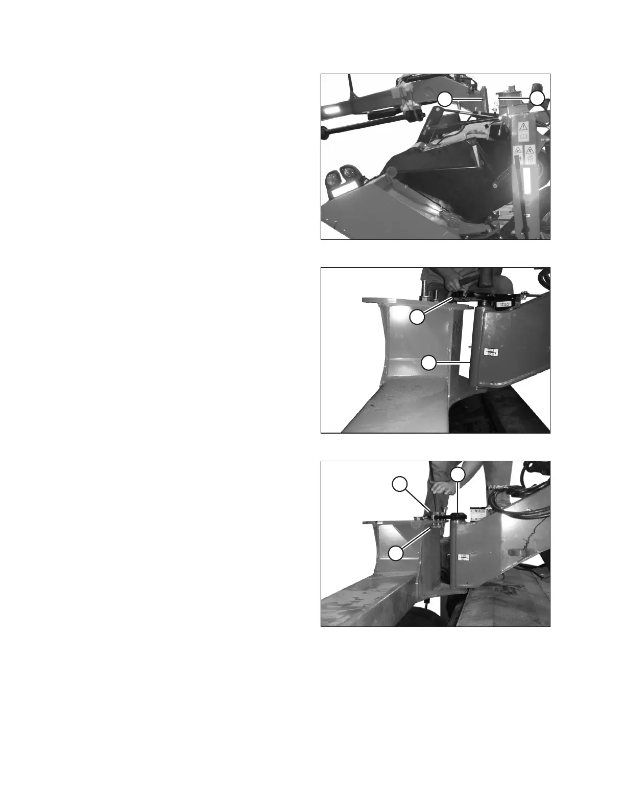 10. Slowly lower hitch (A) while maintaining pin alignment until