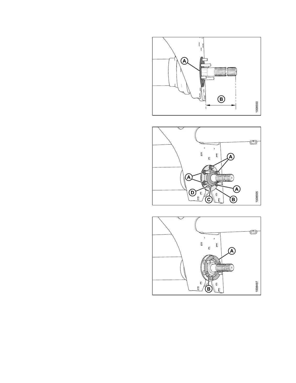 10. Install flange (B) with grease fitting (D), and five